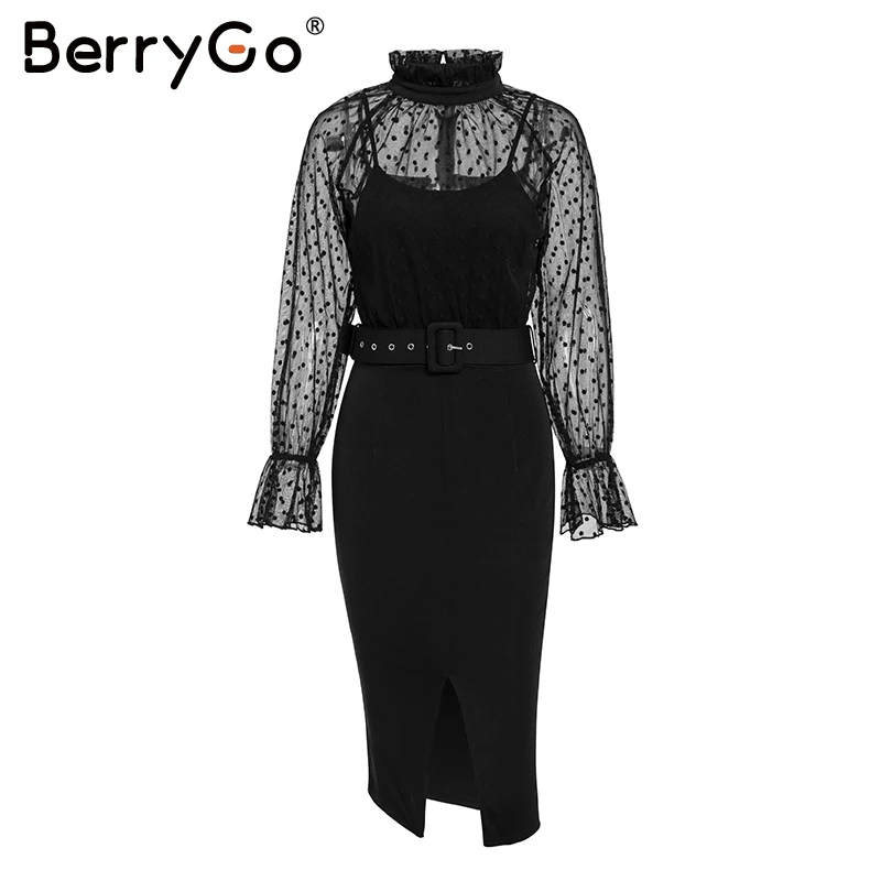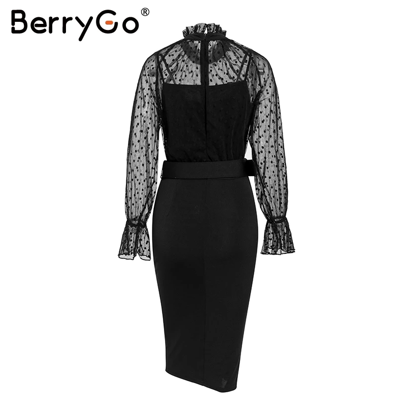 Product Name: BerryGo сексуальное Полосатое кружевное женское платье в горошек черная поясная оболочка вечернее платье с пышными рукавами осенне зимнее офи...