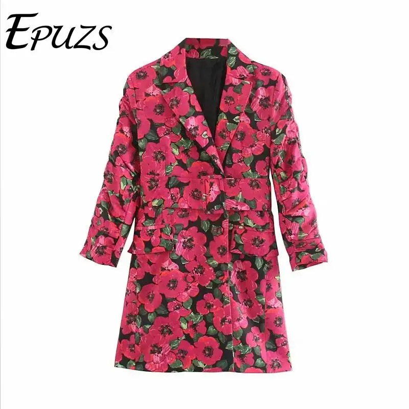 (44% Off) Купить Осеннее платье с длинными рукавами винтажное мини блейзер цветочным принтом элегантное офисное поясом повседневные платья для д... Продажа Дешево