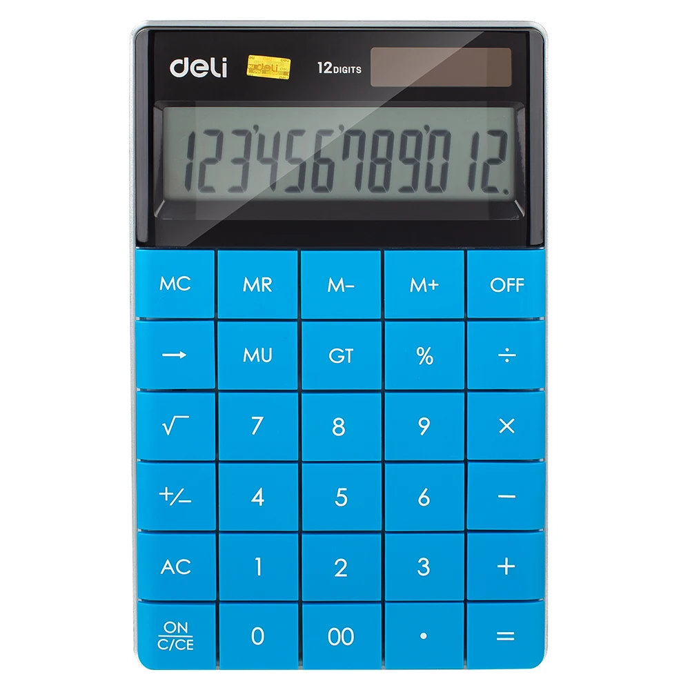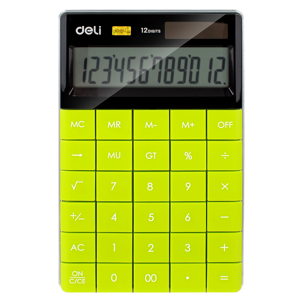 (45% Off) Купить Deli E1589 калькулятор калькулятор 12 разрядный аккумулятор и солнечная двойная мощность большой дисплей 5 цветов Продажа Дешево