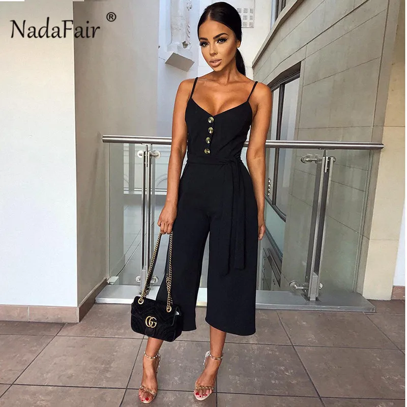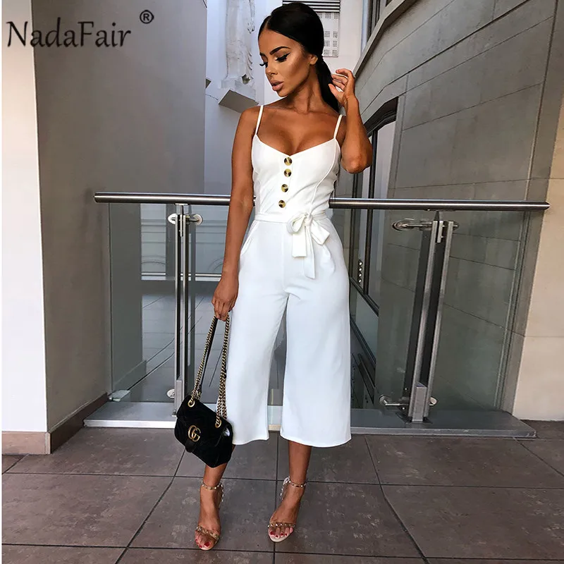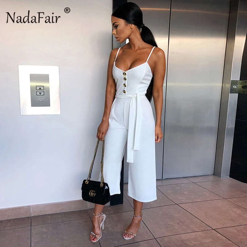 Special Offer Nadafair сексуальный комбинезон с открытой спиной женский комбинезон с поясом элегантный бандаж размера плюс черный белый комбинезон Комбинез... Discount 45% Today!