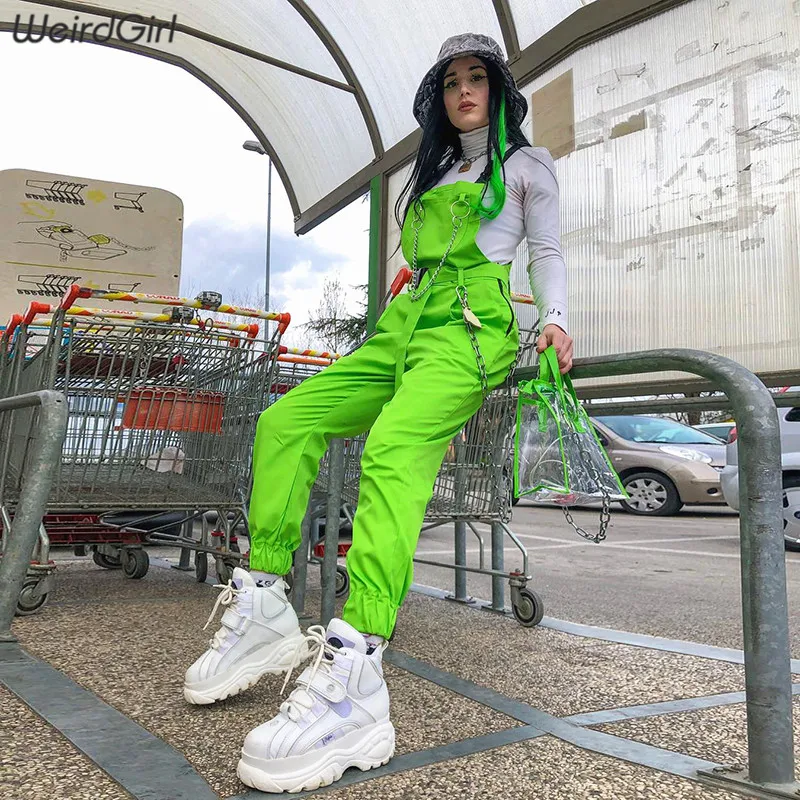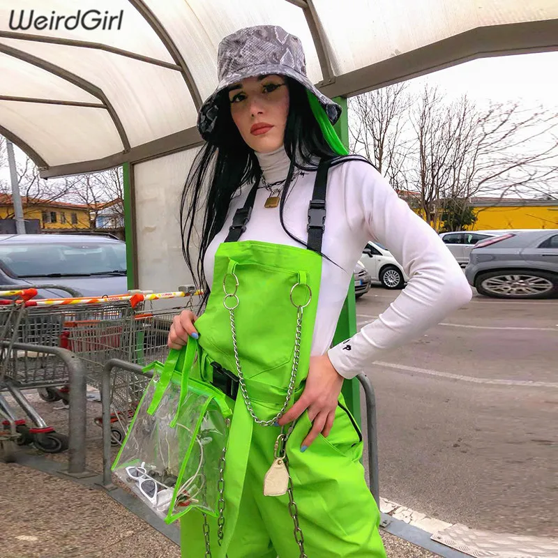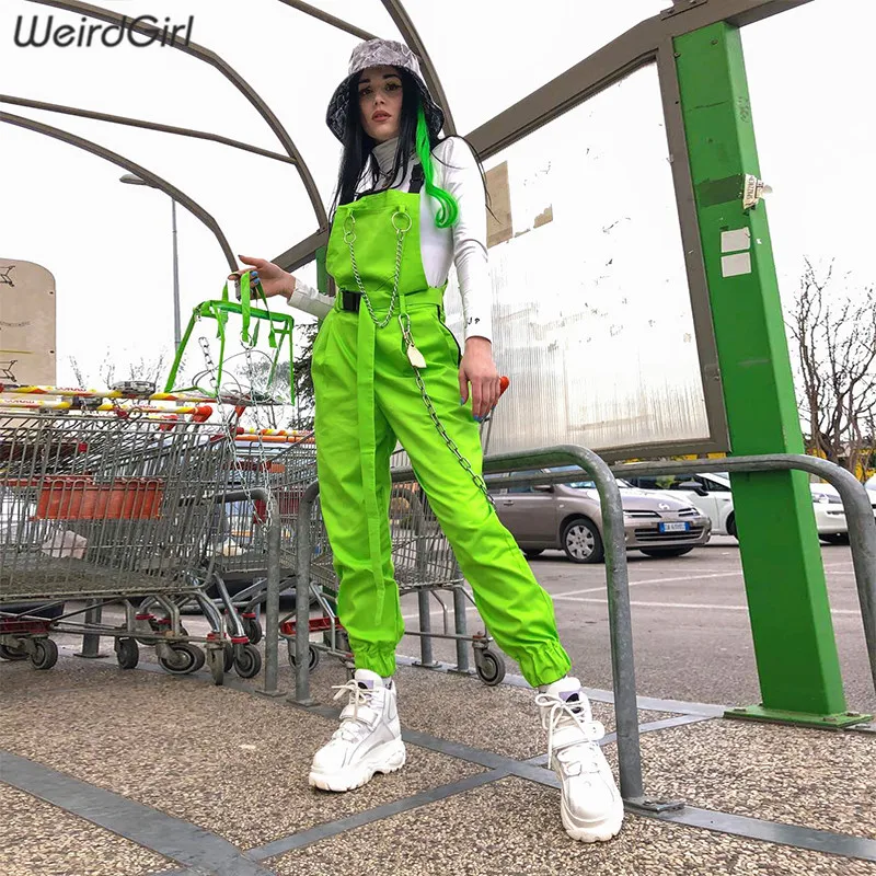 Special Offer Новый модный женский длинный комбинезон с поясом на подтяжках ремнях украшенный металлической цепью однотонный яркий костюм Discount 51% Today!