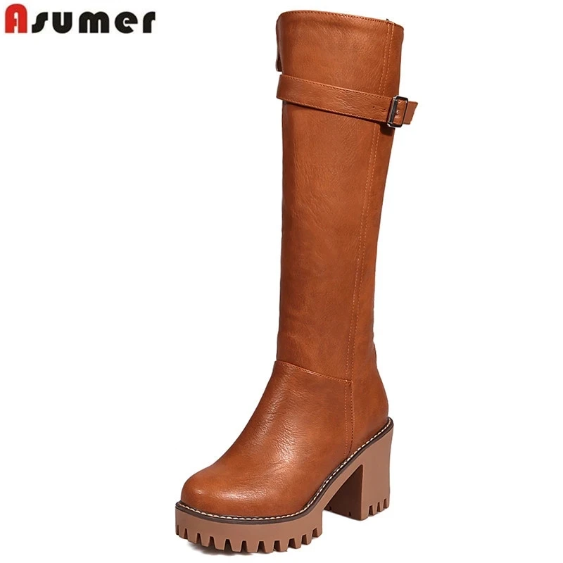 Special Offer ASUMER Большие размеры 34 43; осенне зимние сапоги; женская обувь на молнии с круглым носком на платформе и высоком каблуке; женские сапоги до кол... Discount 52% Today!