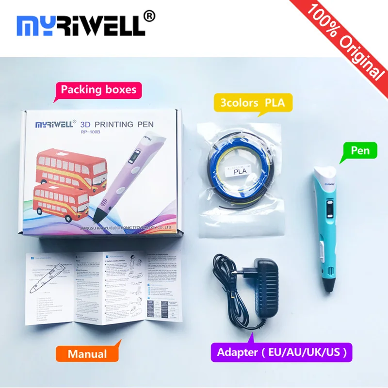 (57% Off) Купить Myriwell Abs 3d Pen Pens ручка 3д для объёмного рисования LCD дисплей,1.75мм Pla пластик нить печать ручку Сделай сам подарок Бе... Цена Дешево