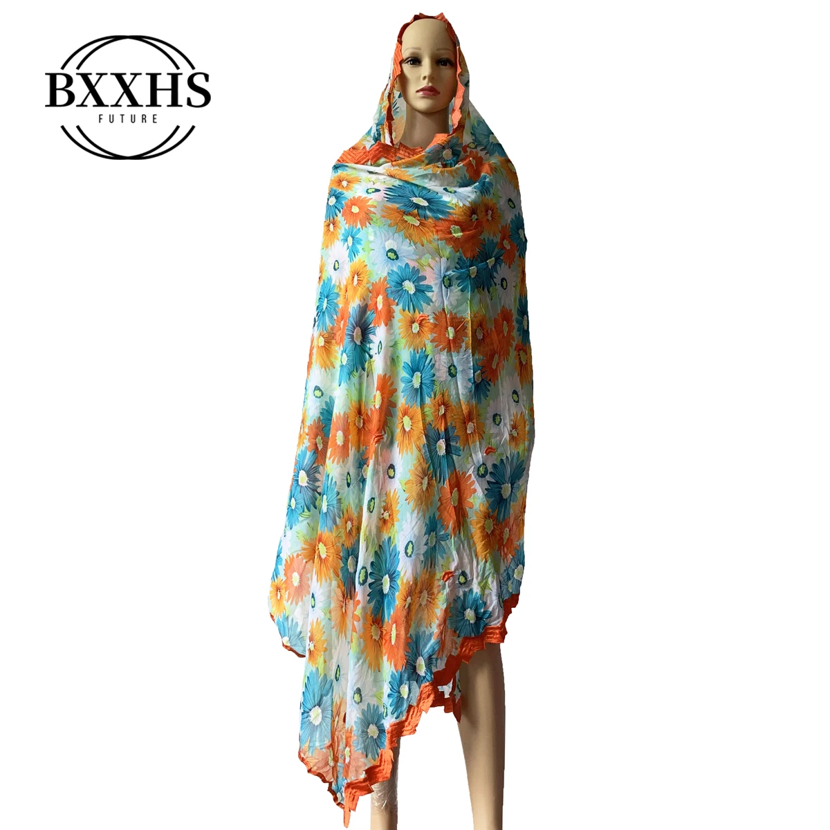 Product Name: Новый Африканский Женский Цветной хлопковый атмосферный шарф с вышивкой большой цветок хлопковый шарф для мусульманских шалей