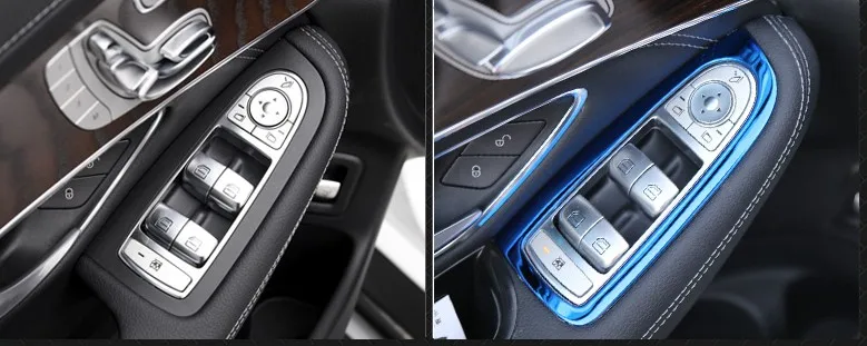(10% Off) Купить 4 шт. автомобильный стеклоподъемник кнопка переключатель панель Крышка отделка Декоративная рамка для Mercedes Benz C GLC класс W205 X253 2015 2016 2017 2018 Продажа Дешево