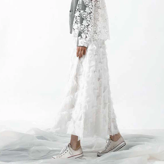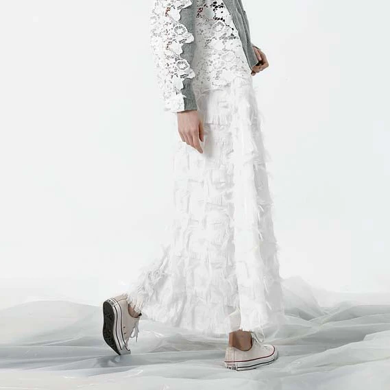Product Name: [EAM] 2020 Весенняя Новинка, модная черно белая юбка с кисточками, прошитая большой маятник, длинный тип, полубоди, Женская юбка YC237