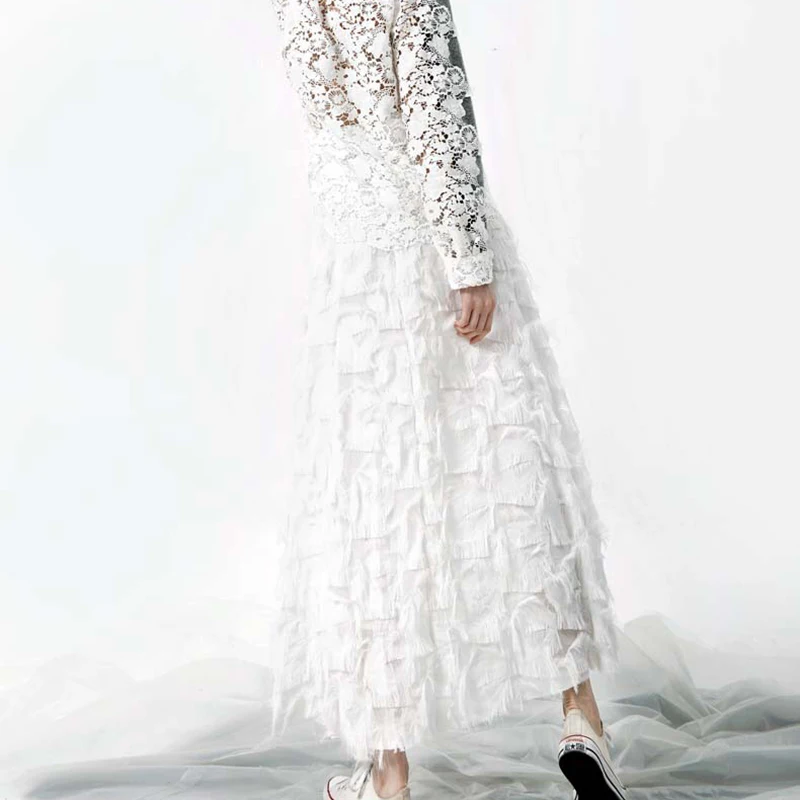 Special Offer [EAM] 2020 Весенняя Новинка, модная черно белая юбка с кисточками, прошитая большой маятник, длинный тип, полубоди, Женская юбка YC237 Discount 18% Today!
