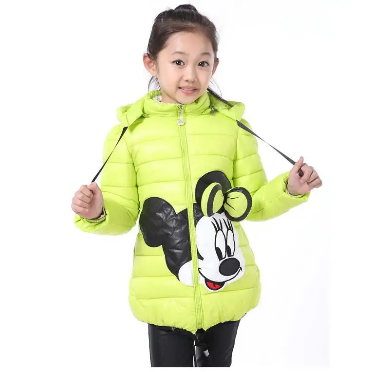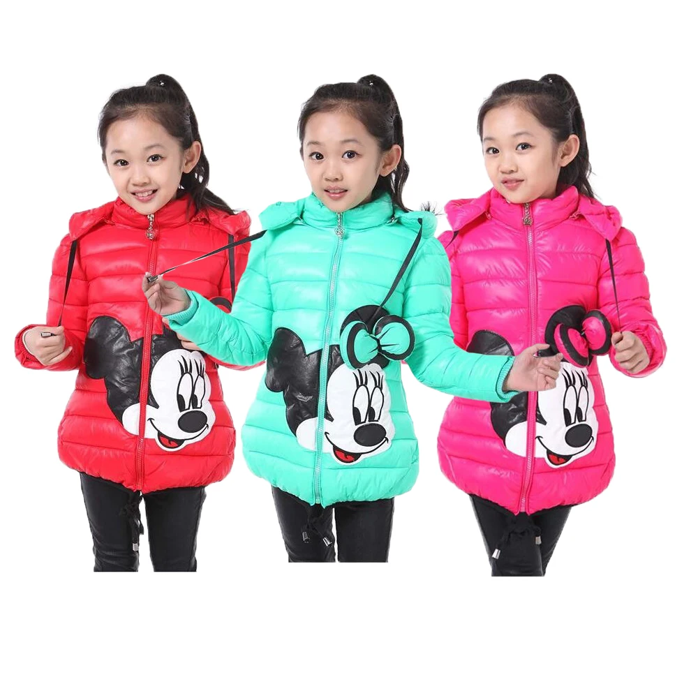 (28% Off) Купить Зимняя куртка для девочек с Минни Маус, большие размеры пальто хлопковой подкладкой теплые детские толстовки капюшоном Цена Дешево
