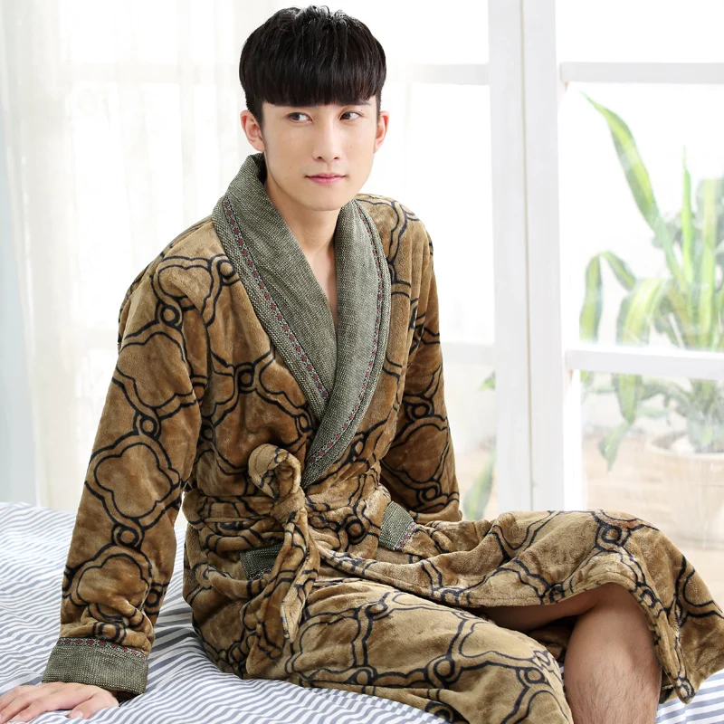 (31% Off) Купить Новое поступление осень зима Повседневная хлопковая атласная шелковая Мужская Ночная рубашка мужской банный халат с поясом элегантный хал... Продажа Дешево