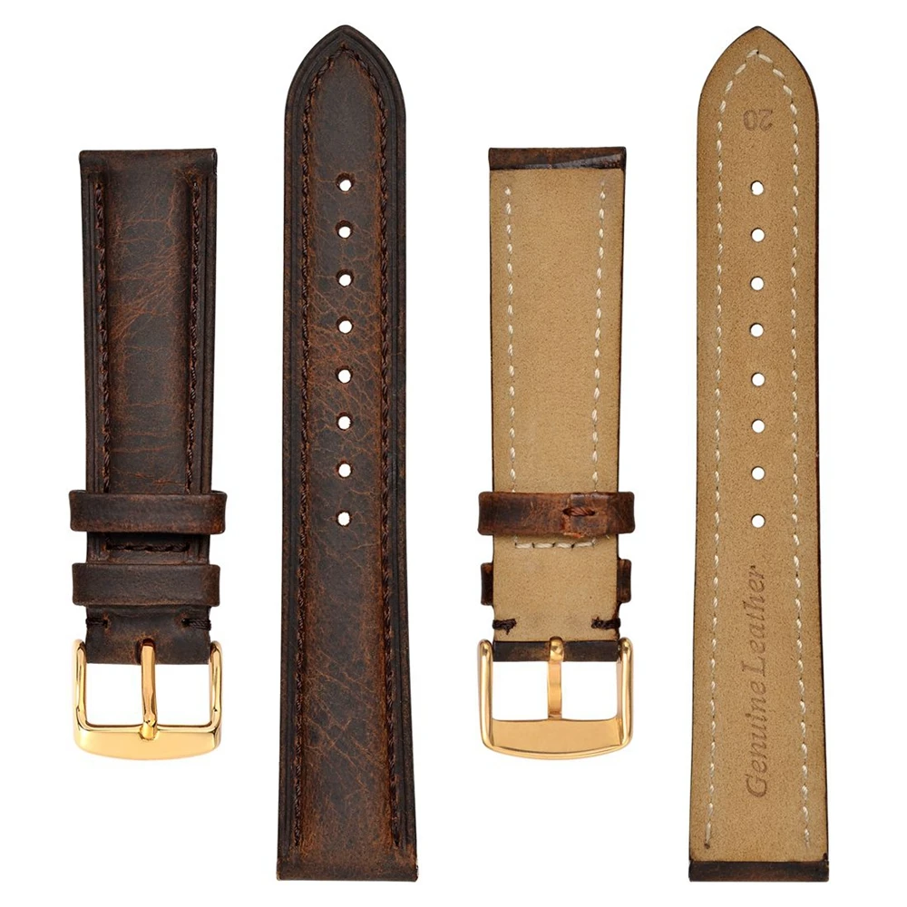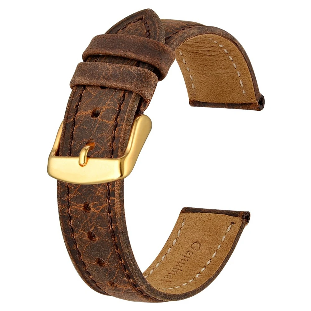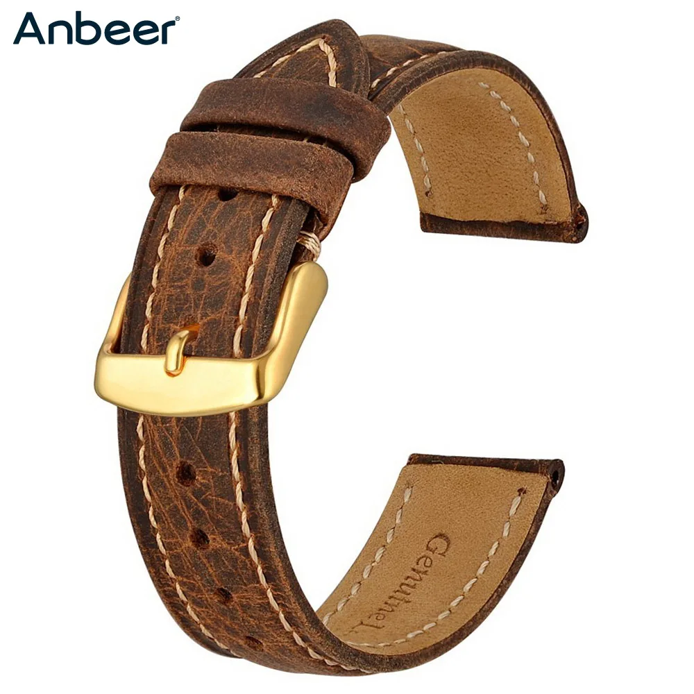 (37% Off) Купить Anbeer ремешок для часов 18 мм 20 22 Crazy Horse кожаный Ретро винтажный Сменный ремень Роскошная золотая пряжка Цена Дешево