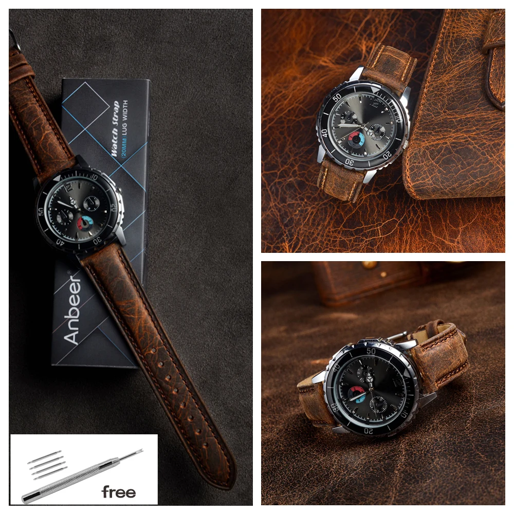 Special Offer Anbeer ремешок для часов 18 мм 20 мм 22 мм Crazy Horse кожаный ремешок Ретро винтажный Сменный ремень Роскошная золотая пряжка Discount 37% Today!