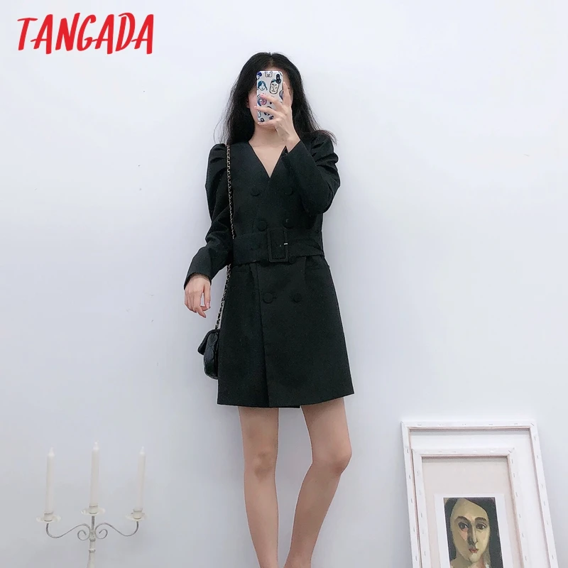 Special Offer Tangada женское элегантное черное платье блейзер с поясом с длинным рукавом 2019 Винтажный стиль женское офисное мини платье vestidos 6P20 Discount 40% Today!