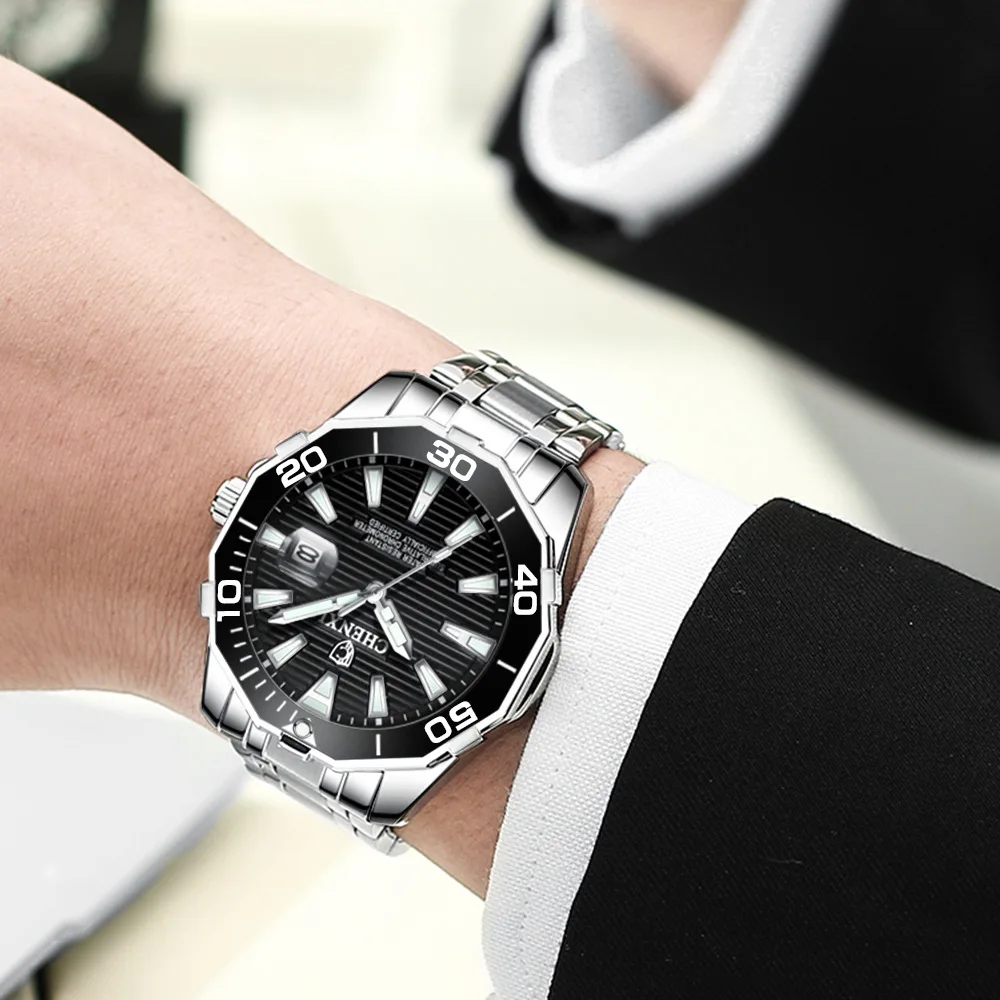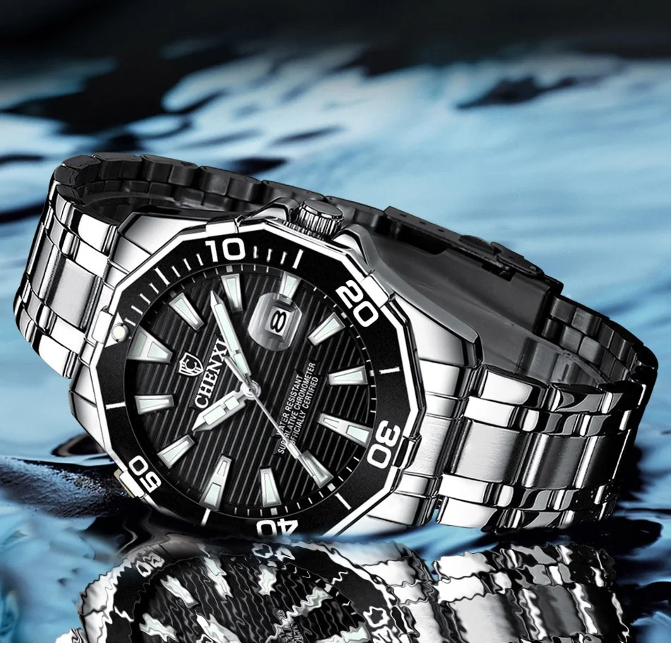 Product Name: Роскошные мужские деловые часы CHENXI, серебристые черные повседневные часы из нержавеющей стали для мужчин, водонепроницаемые Модные наручн...