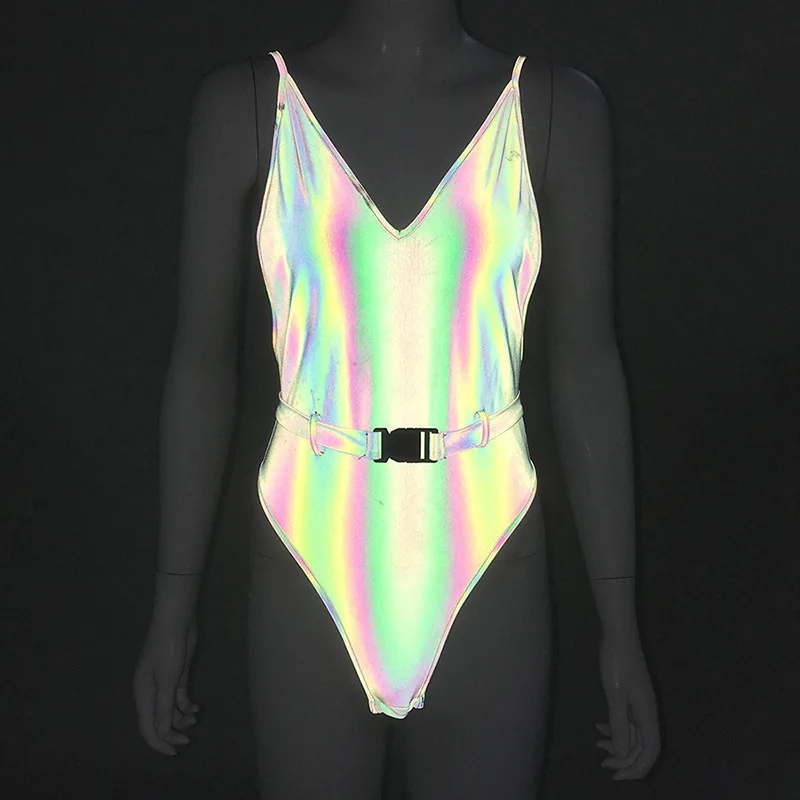 (48% Off) Купить BOOFEENAA голографическая Светоотражающая Сексуальная застежка для боди Пояс Цельный Наряд женская комбинация рейверская Праздничная Клубная... Цена Дешево