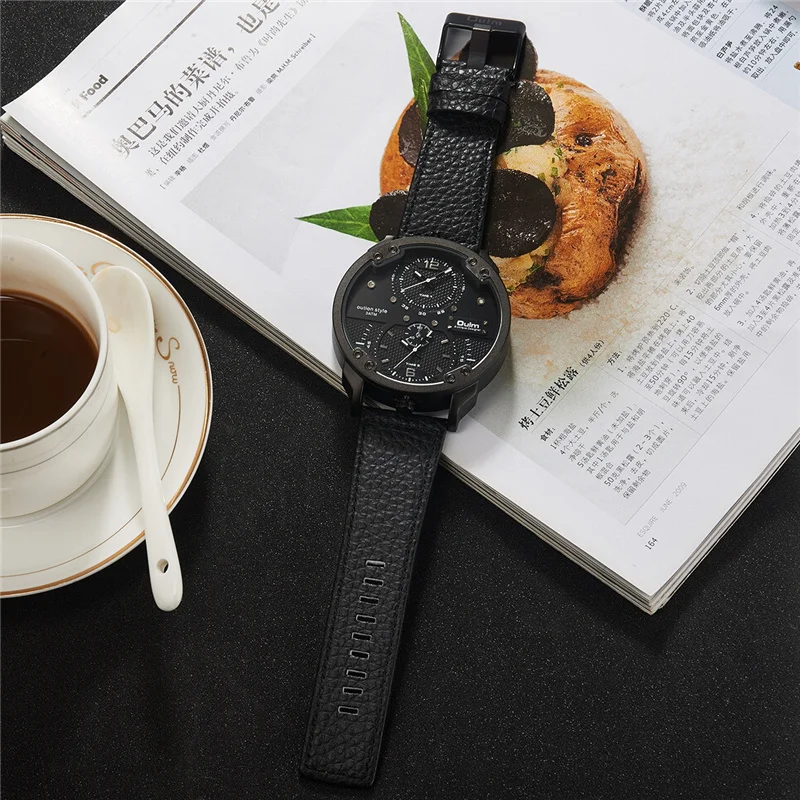 Special Offer Oulm Мужские повседневные спортивные часы Уникальный дизайн большие часы Мужские кварцевые часы с кожаным ремешком с двойным часовым поясом ... Discount 50% Today!
