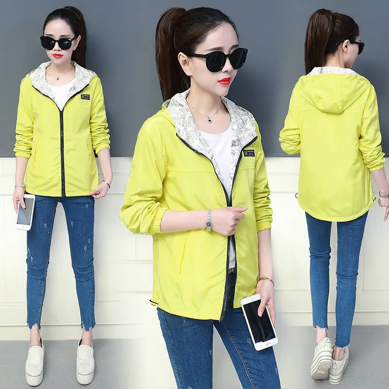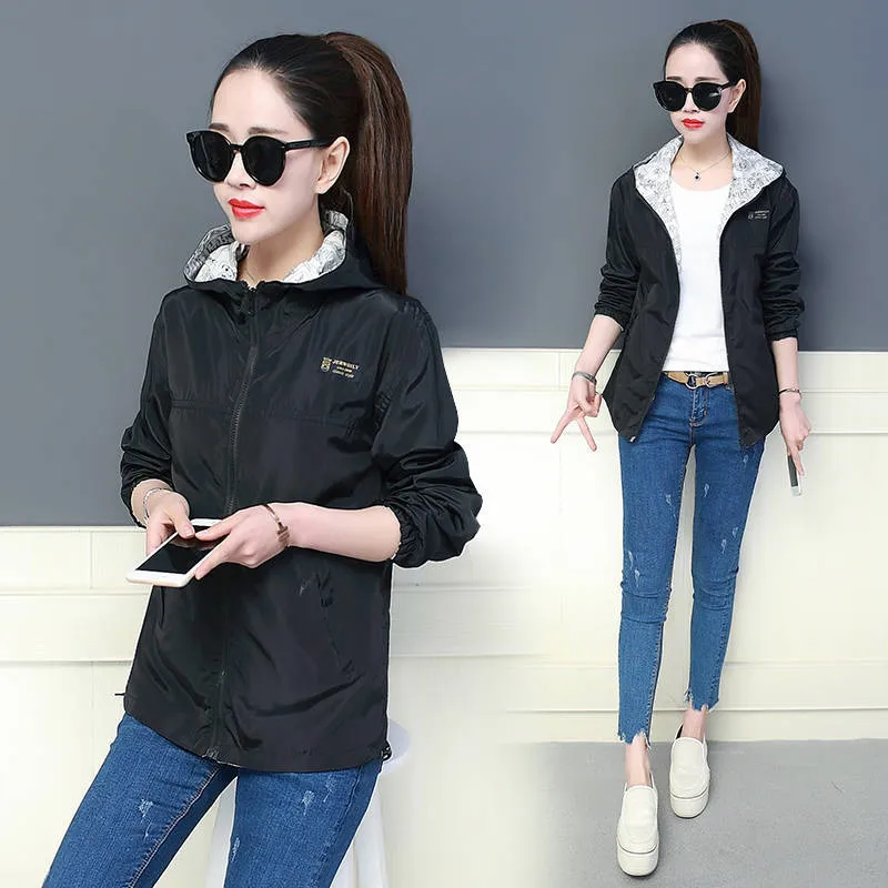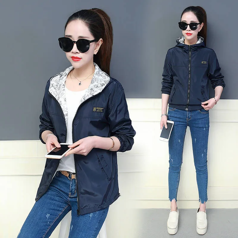 Product Name: Весенне осенняя Женская Повседневная Базовая куртка с карманами на молнии и капюшоном, Двусторонняя одежда, верхняя одежда с мультяшным пр...