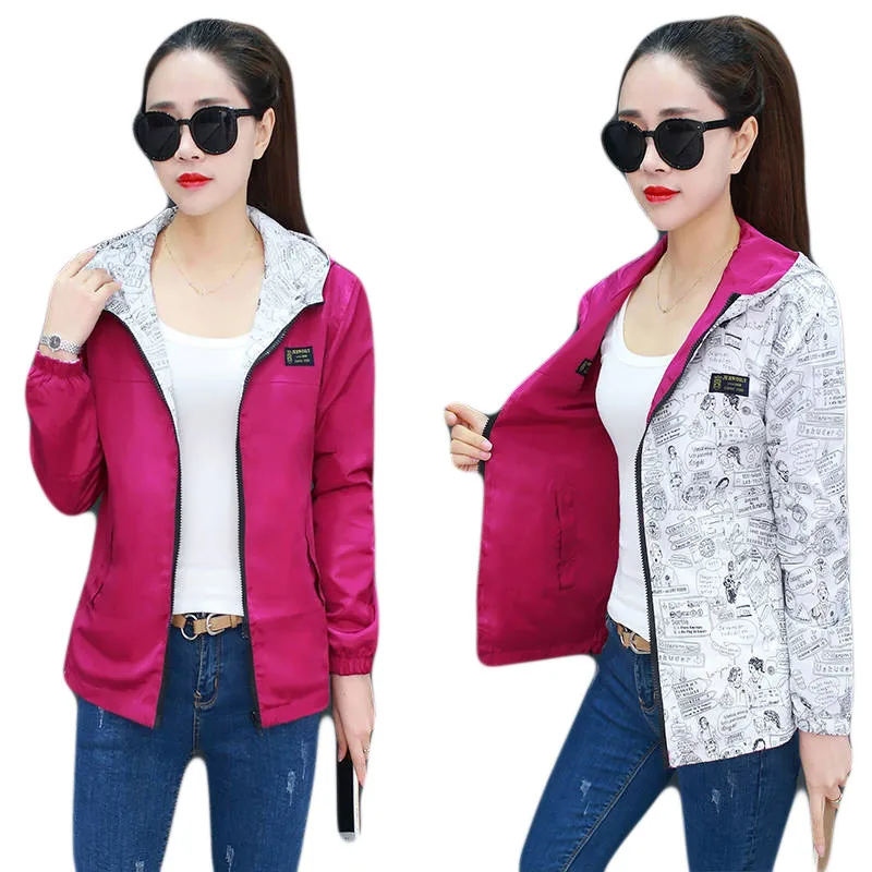 Special Offer Весенне осенняя Женская Повседневная Базовая куртка с карманами на молнии и капюшоном, Двусторонняя одежда, верхняя одежда с мультяшным пр... Discount 50% Today!