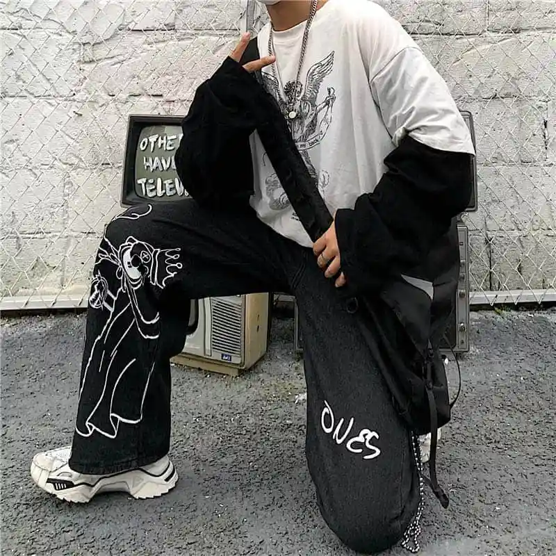 Product Name: Мужские Женские Ретро широкие брюки прямые с буквенным принтом брюки пояс эластичный пояс шнурок хип хоп Уличная одежда брюки джоггеры
