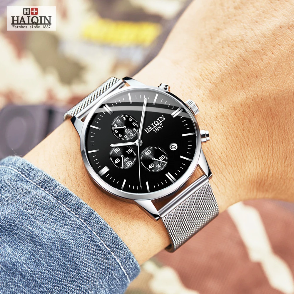 Special Offer Мужские кварцевые часы HAIQIN, брендовые Роскошные спортивные наручные часы с сетчатым ремешком, 2019 Discount 92% Today!
