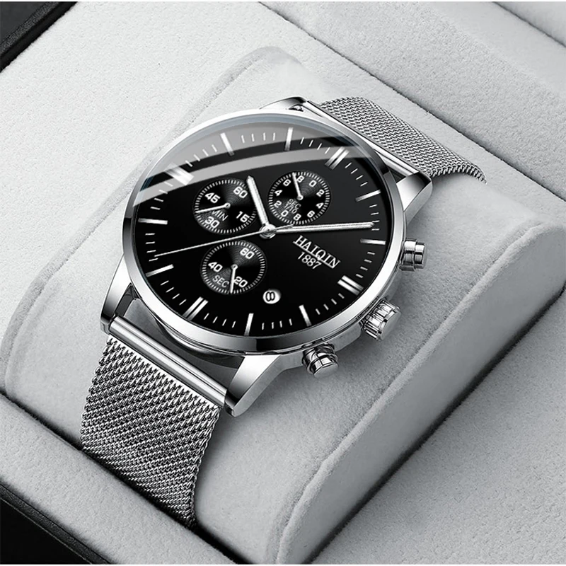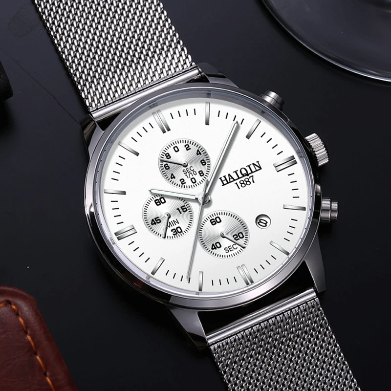 Product Name: Мужские кварцевые часы HAIQIN, брендовые Роскошные спортивные наручные часы с сетчатым ремешком, 2019