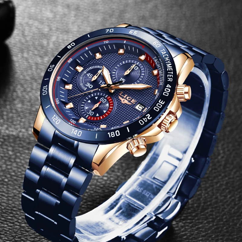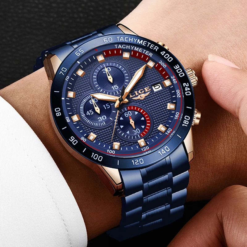 Product Name: Лучший подарок для мужчин, LIGE, модные деловые мужские часы, Топ люксовый бренд, часы из нержавеющей стали, мужские кварцевые часы для Relogio ...