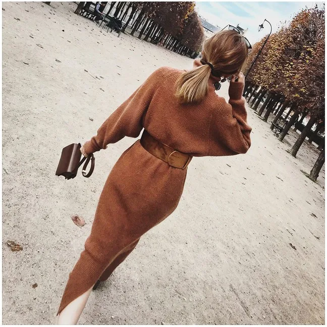 Special Offer 2018 Прямая поставка зимнее женское платье свитер женский пуловер Водолазка с длинными рукавами теплый тонкий свитер вязаное платье с поясом Discount 0% Today!
