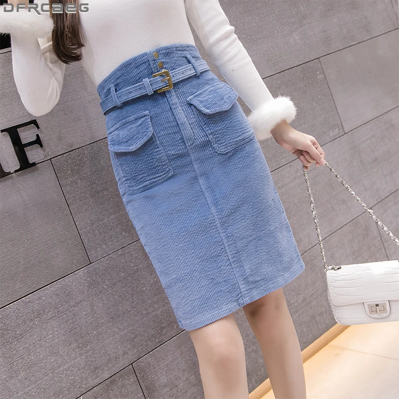 Product Name: 2019 модные осенне зимние женские юбки цвета хаки, синий, черный юбка Вельветовая облегающая элегантная юбка карандаш пояс Saia Midi Jupe Femme