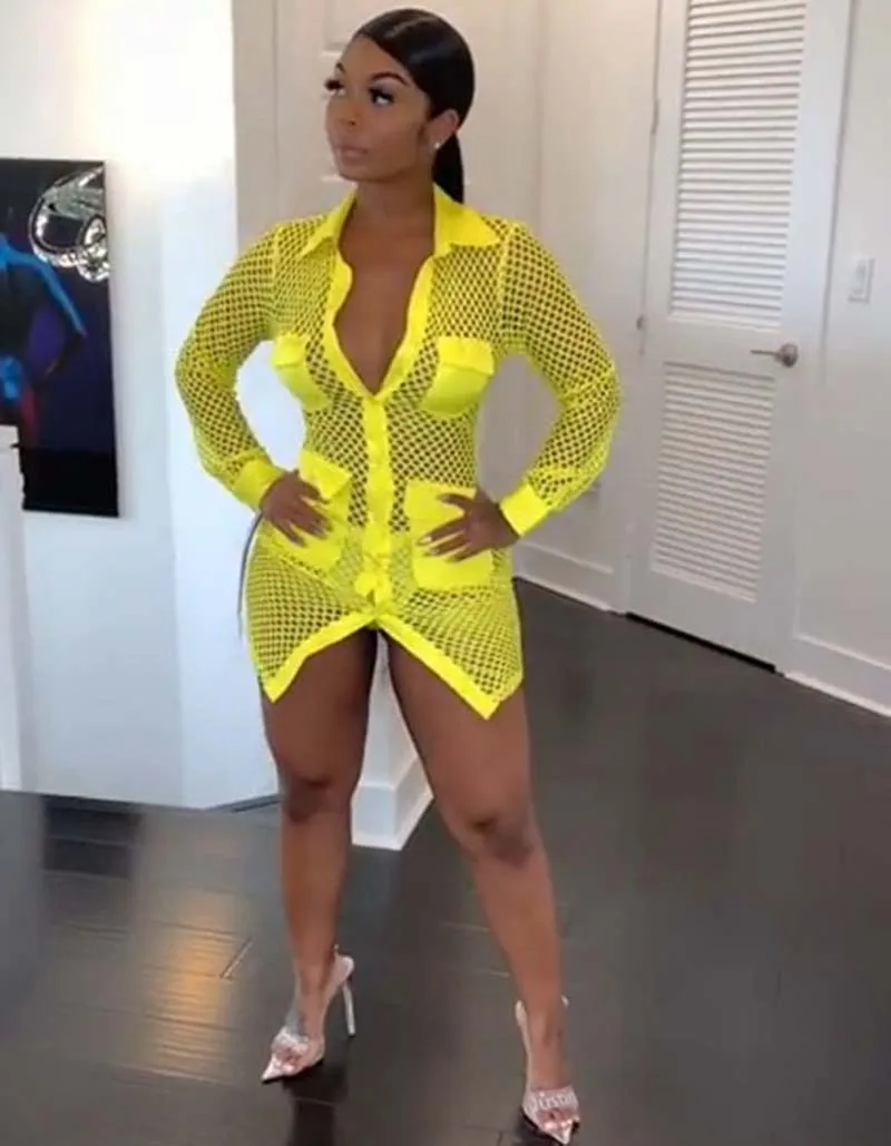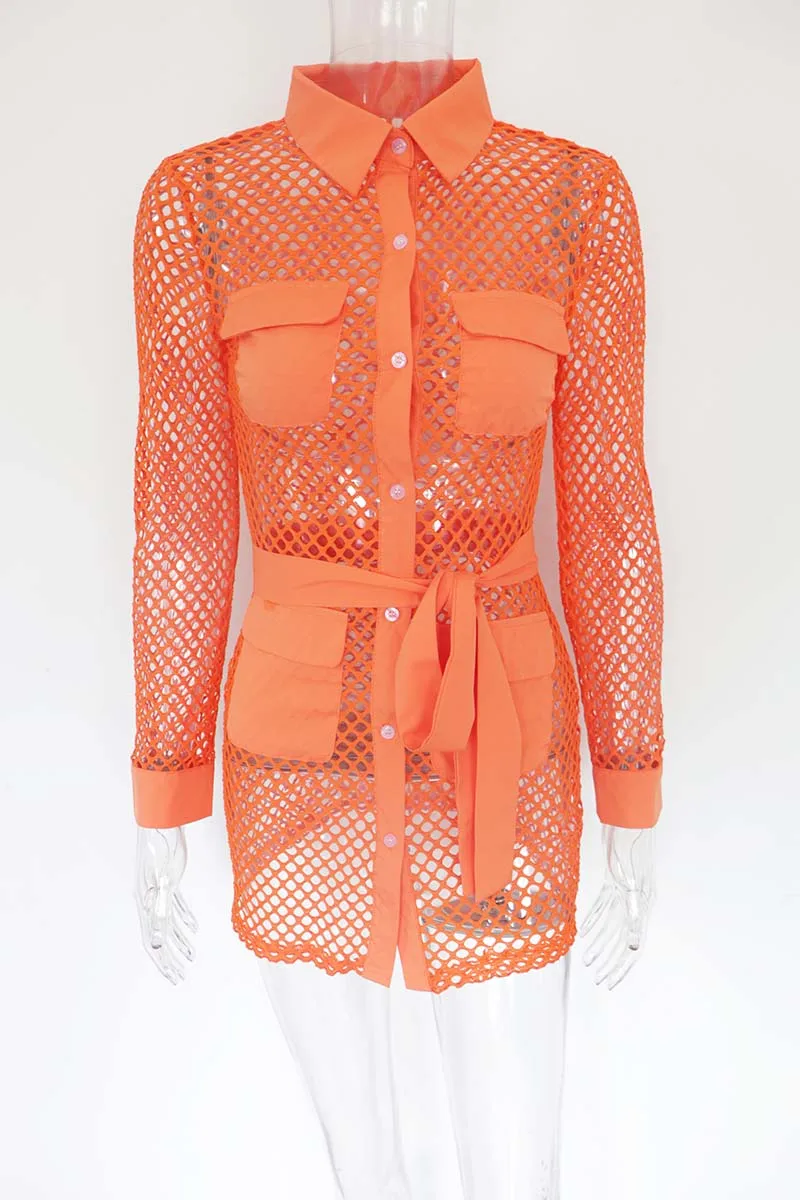Product Name: Bonnie Forest сексуальное открытое платье с отложным воротником и поясом мини платье женские карманные детали, платье из сетчатой ткани, чувством...