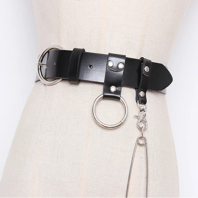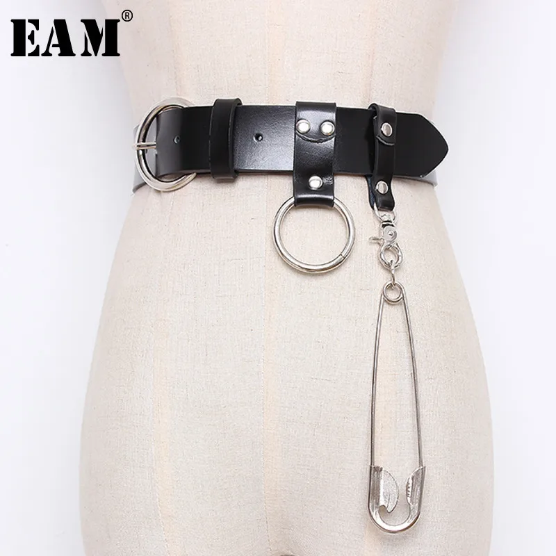 Special Offer [EAM] 2020 Весна Лето Женский Стильный черный цвет сплайсированные серебряная подвеска кольцо ремень Пряжка пояс из полиуретановой кожи длинны... Discount 21% Today!