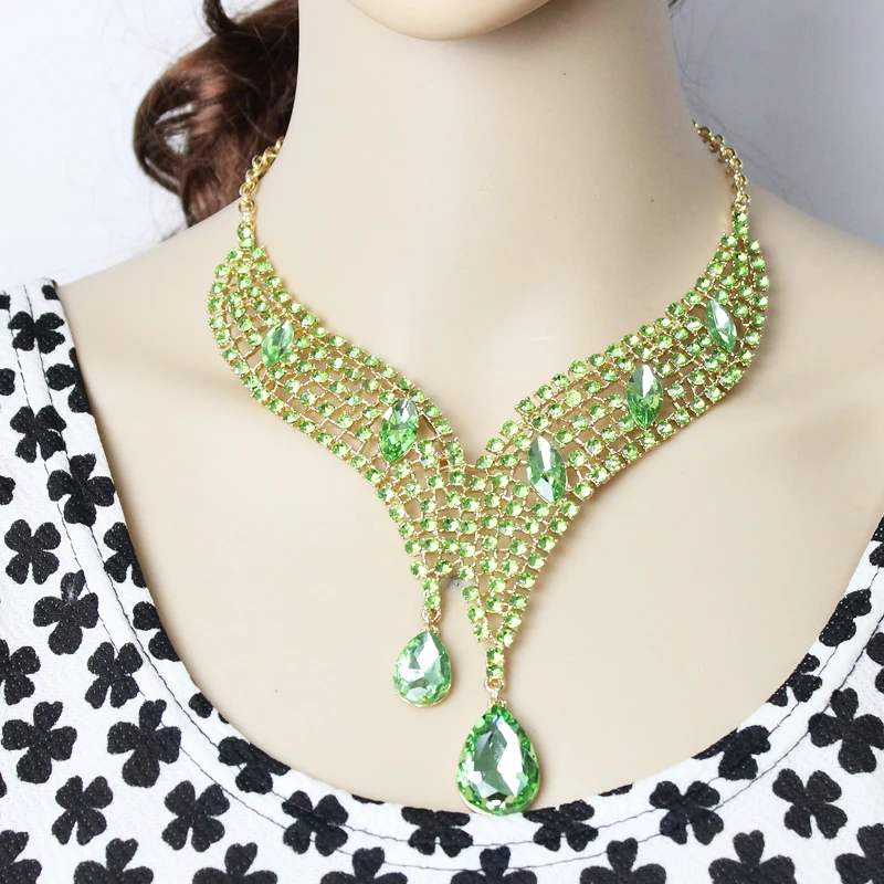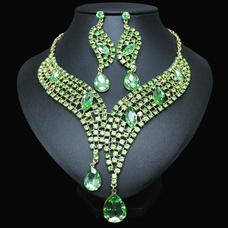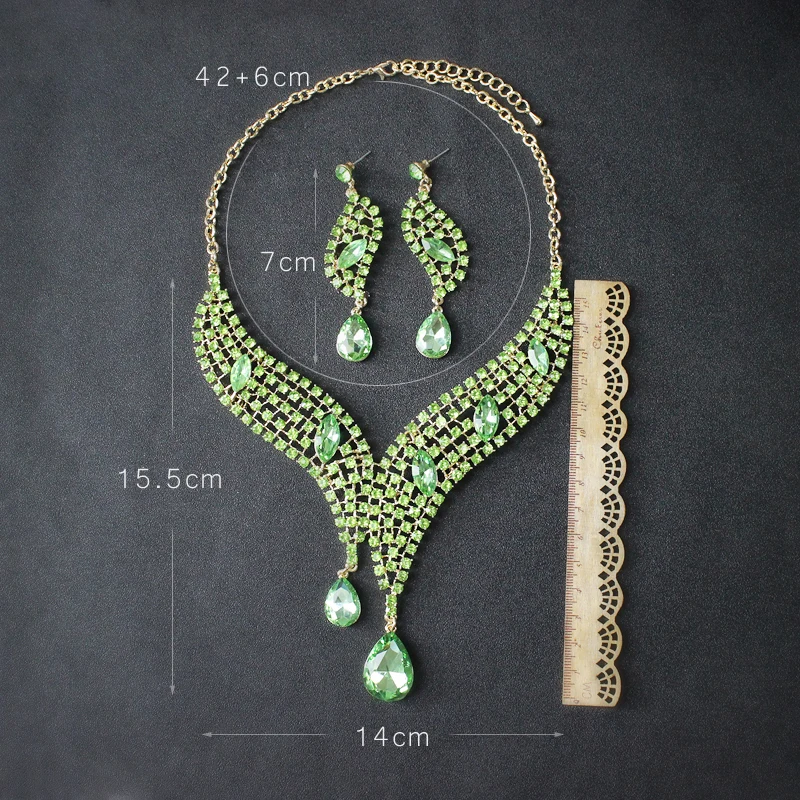 Product Name: Новые наборы свадебных ювелирных изделий большая капля воды кристалл свадебный набор украшений для женщин золотой цвет колье ожерелье сер...