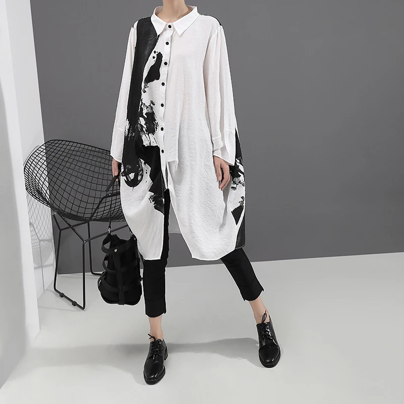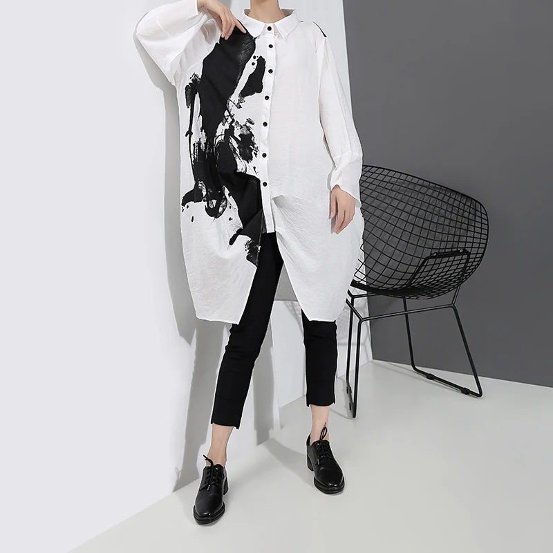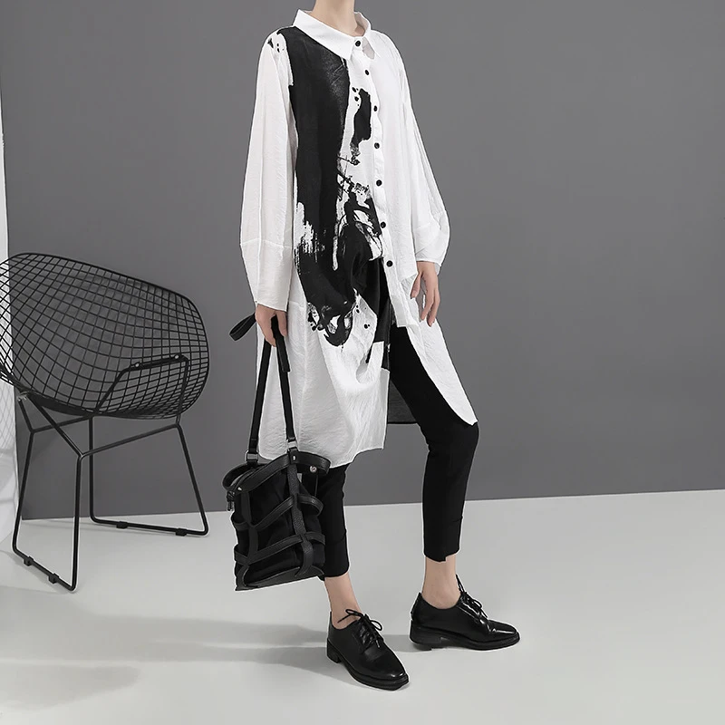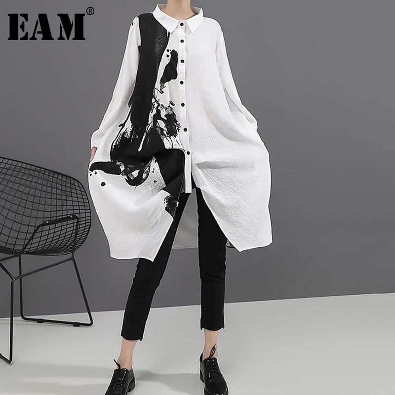 Special Offer [EAM] женское черно белое платье с принтом, большие размеры, новинка, с отворотом, с длинным рукавом, свободное, модное, весеннее, Осеннее, 2020 1A923 Discount 33% Today!