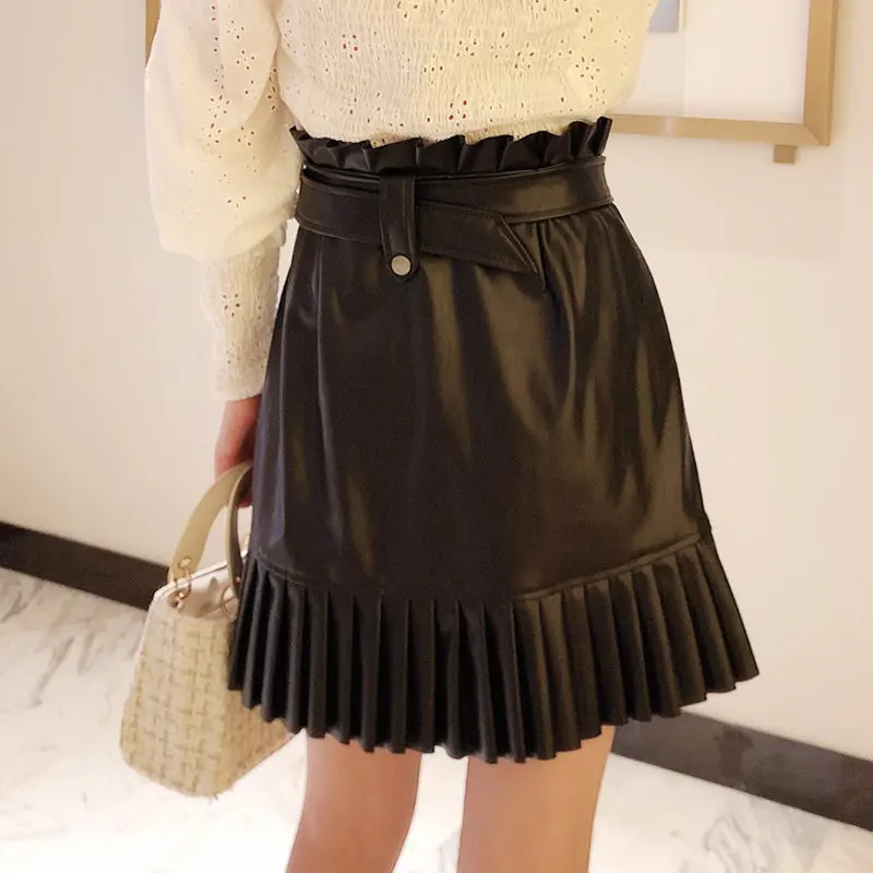 Special Offer 2020 черные кожаные юбки женские винтажные юбки ретро юбка с высокой талией панк зимняя плиссированная юбка Корейская юбка из искусственной ... Discount 40% Today!