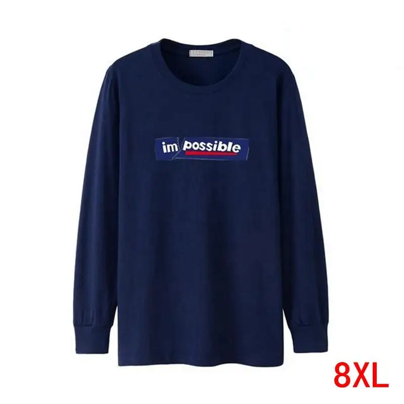Special Offer Мужская футболка большого размера 5XL, 6XL, 7XL, 8XL, осенне зимняя футболка с длинными рукавами и круглым вырезом и надписью XL, домашняя темно синя... Discount 40% Today!