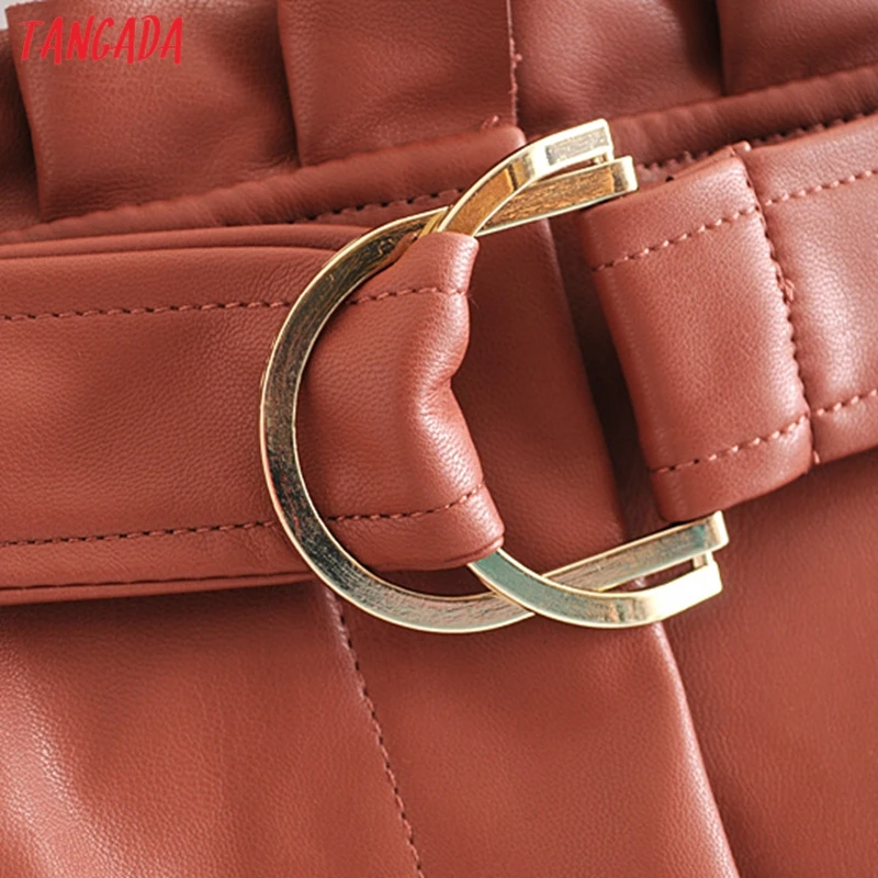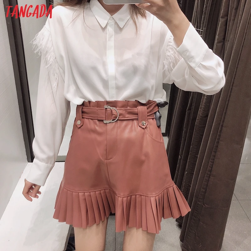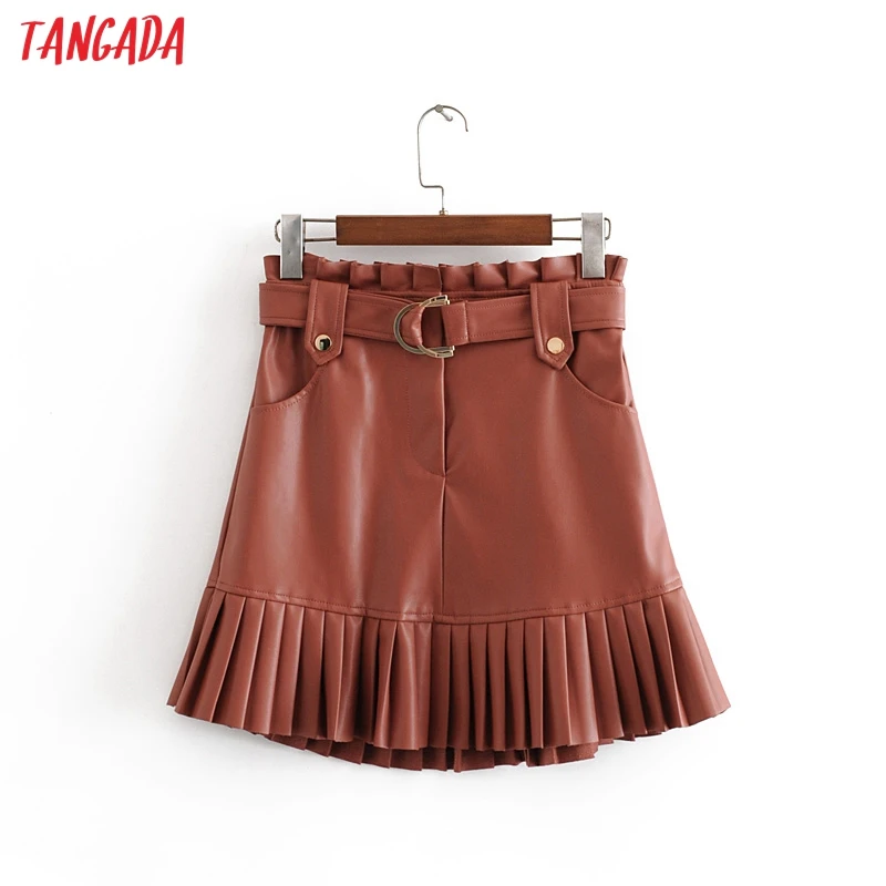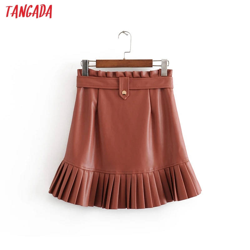 Special Offer Tangada женские плиссированные юбки из искусственной кожи faldas mujer с поясом женская элегантная мини юбка для девушек 3H37 Discount 40% Today!