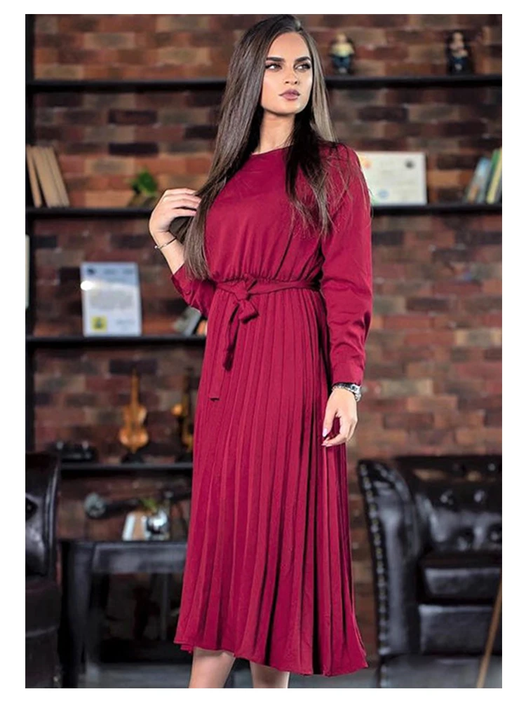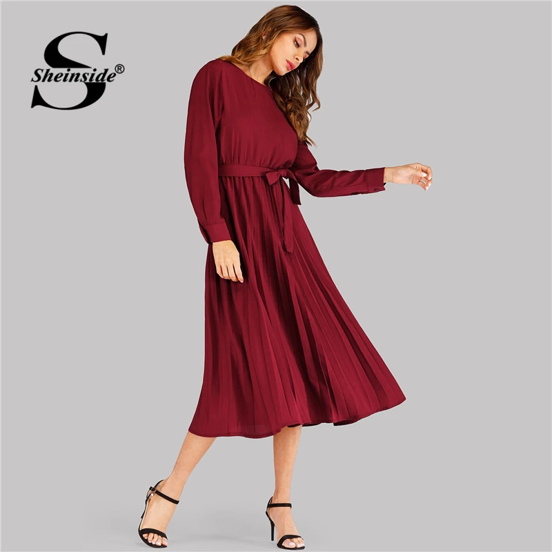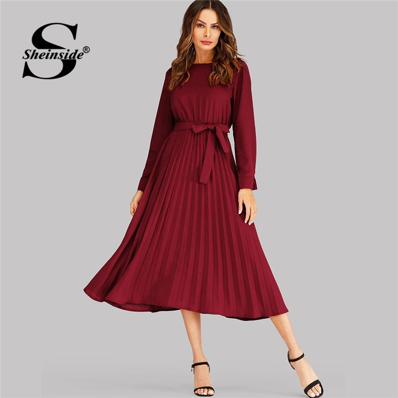 Special Offer Женское платье с длинным рукавом Sheinside, элегантное плиссированное платье бордового цвета, вечернее длинное платье трапециевидной формы, 2019 Discount 41% Today!