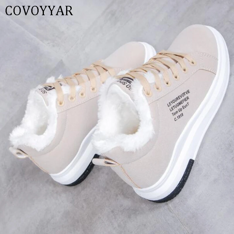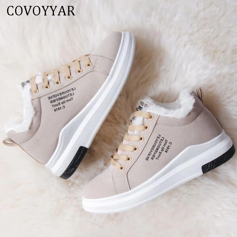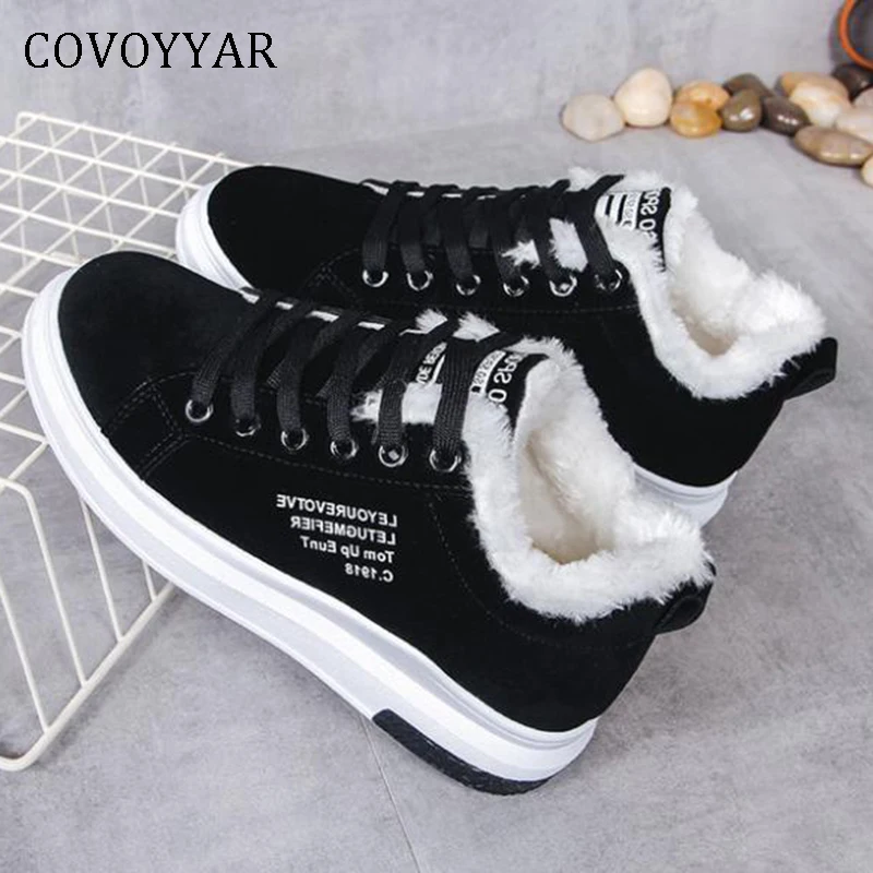 Special Offer COVOYYAR 2019 зимняя женская обувь; теплая плюшевая женская повседневная обувь на меху; модные кроссовки на шнуровке; зимние ботинки на платформе;... Discount 45% Today!