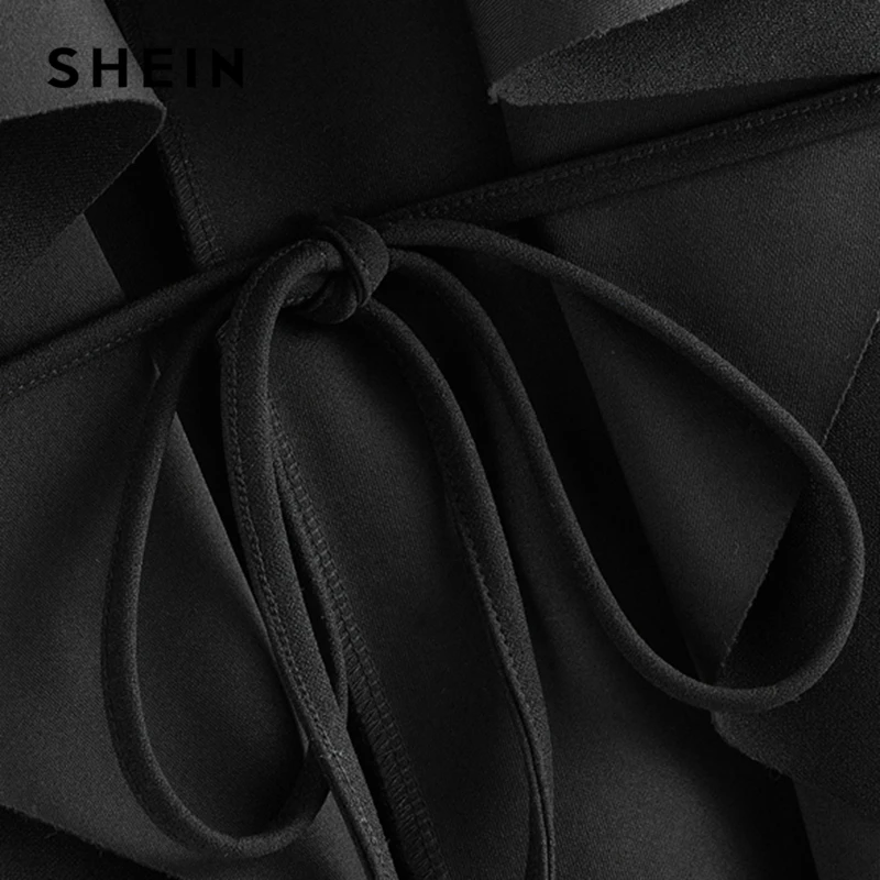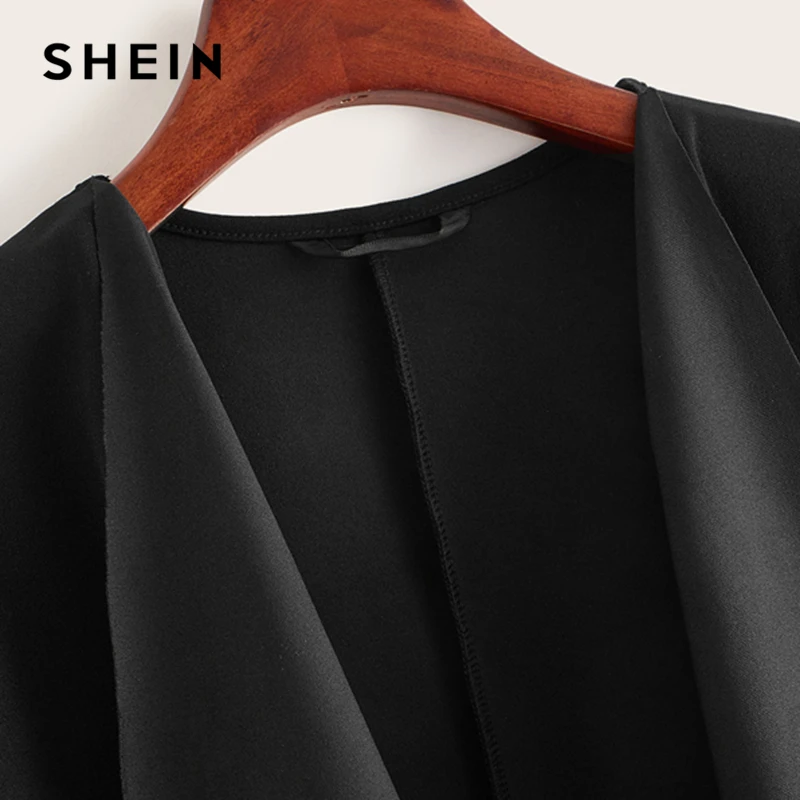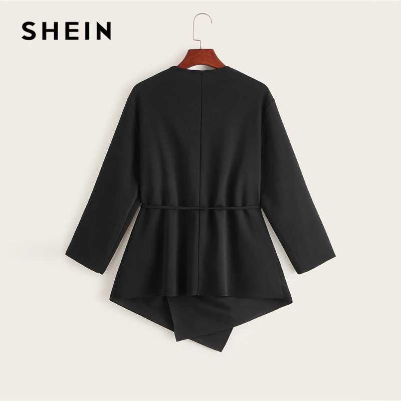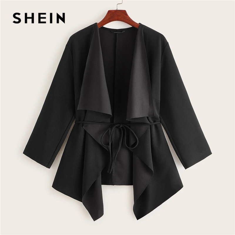 (48% Off) Купить Шеин черный водопад воротник асимметричный подол пальто с поясом женские 2019 осень сплошной 3 4 Длина рукав Повседневная Верхняя одеж... Продажа Дешево