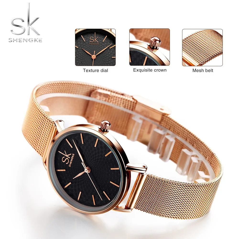 Product Name: Shengke брендовые роскошные женские часы высокого качества с золотым сетчатым ремешком, женские наручные часы, женские часы Reloj Mujer 2017 SK
