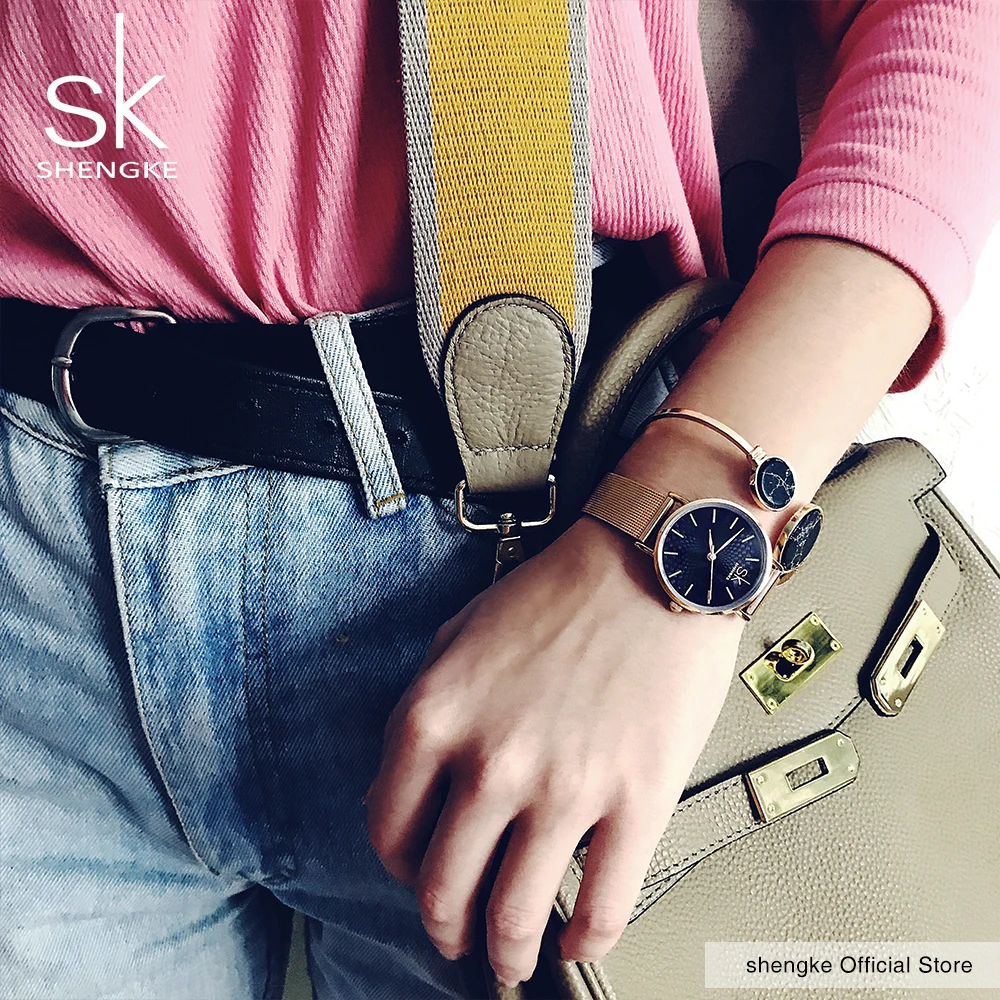 Special Offer Shengke брендовые роскошные женские часы высокого качества с золотым сетчатым ремешком, женские наручные часы, женские часы Reloj Mujer 2017 SK Discount 51% Today!