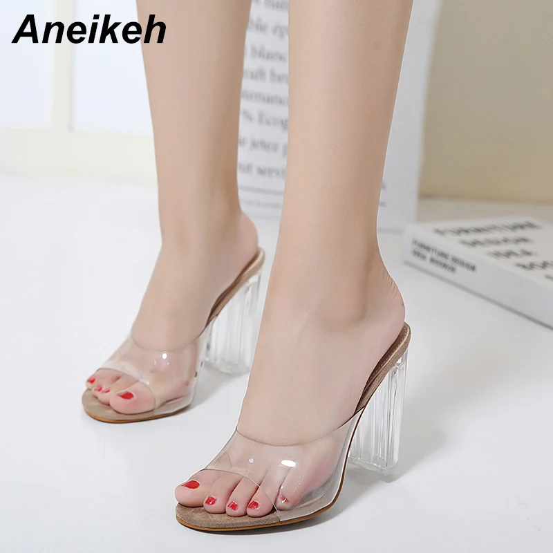 Special Offer Aneikeh Большие размеры 41, 42, новые женские босоножки пикантные прозрачные женские босоножки из ПВХ на высоком каблуке 11 см Discount 52% Today!