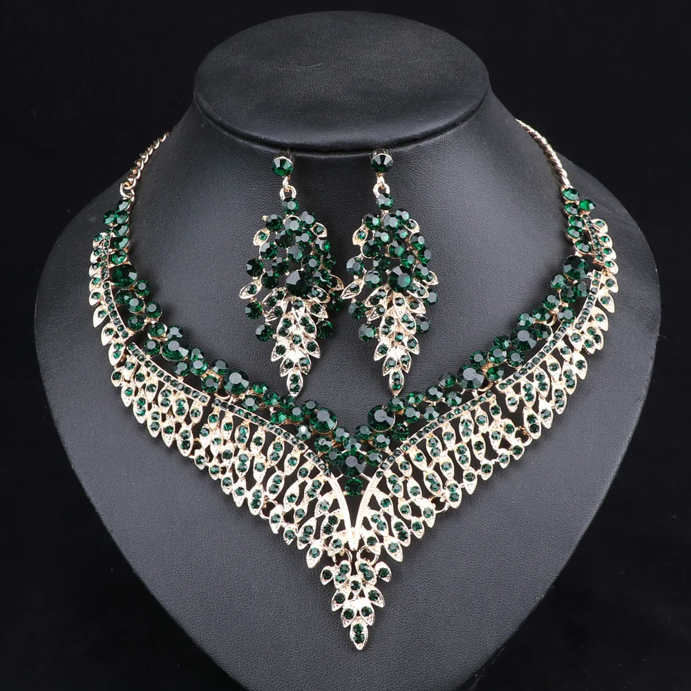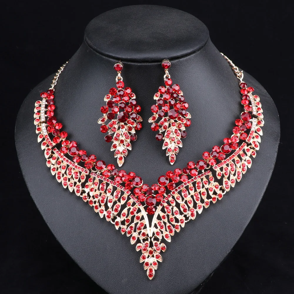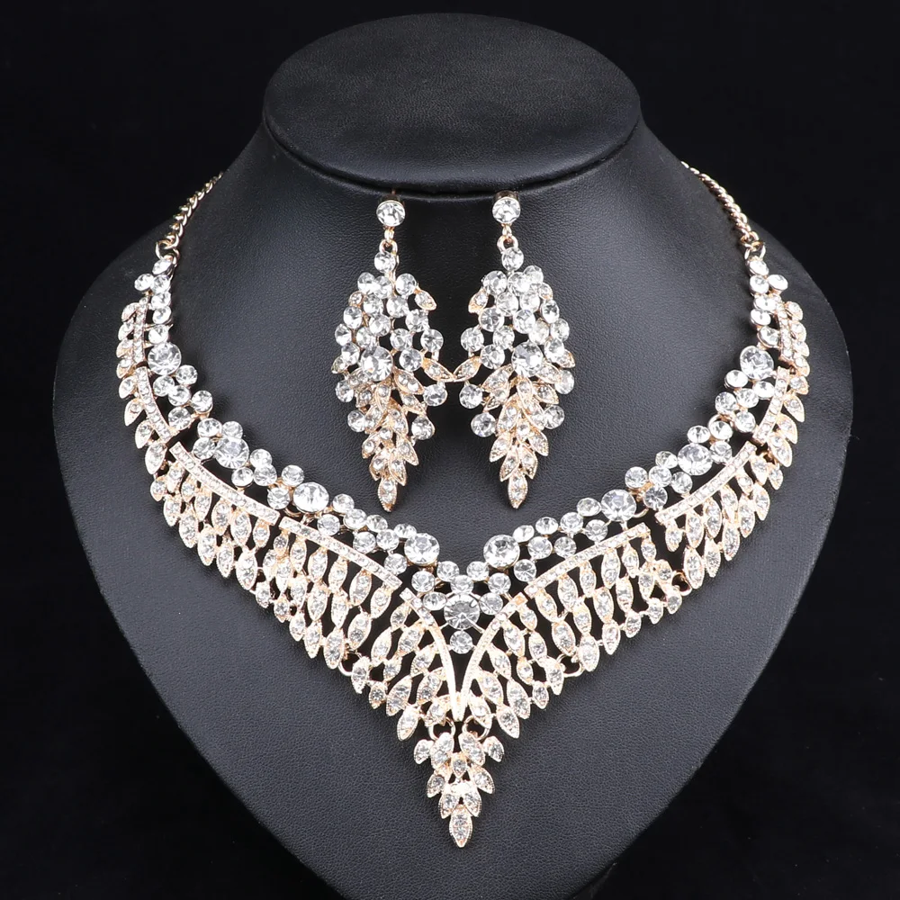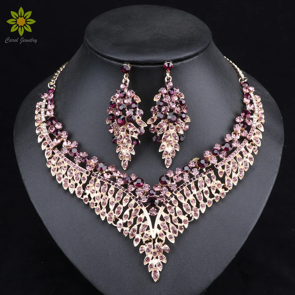 (53% Off) Купить Женский свадебный комплект ювелирных изделий в африканском стиле с большим кристаллом, ожерелье и серьги, свадебные ювелирные изделия Цена Дешево