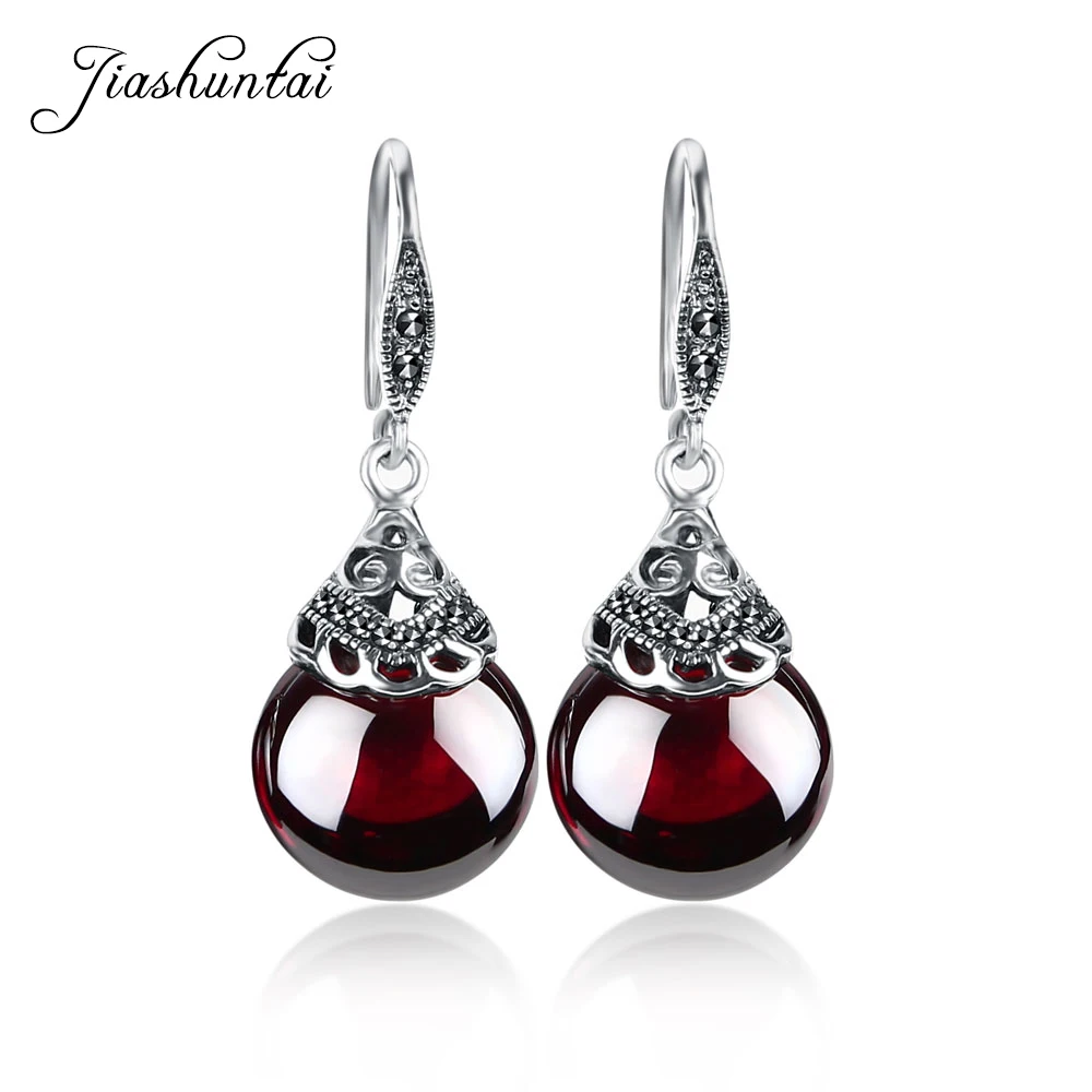 (55% Off) Купить Женские круглые серьги подвески JIASHUNTAI в стиле ретро, из 100% стерлингового серебра 925 пробы, натуральный красный драгоценный камень, рубин, юв... Цена Дешево