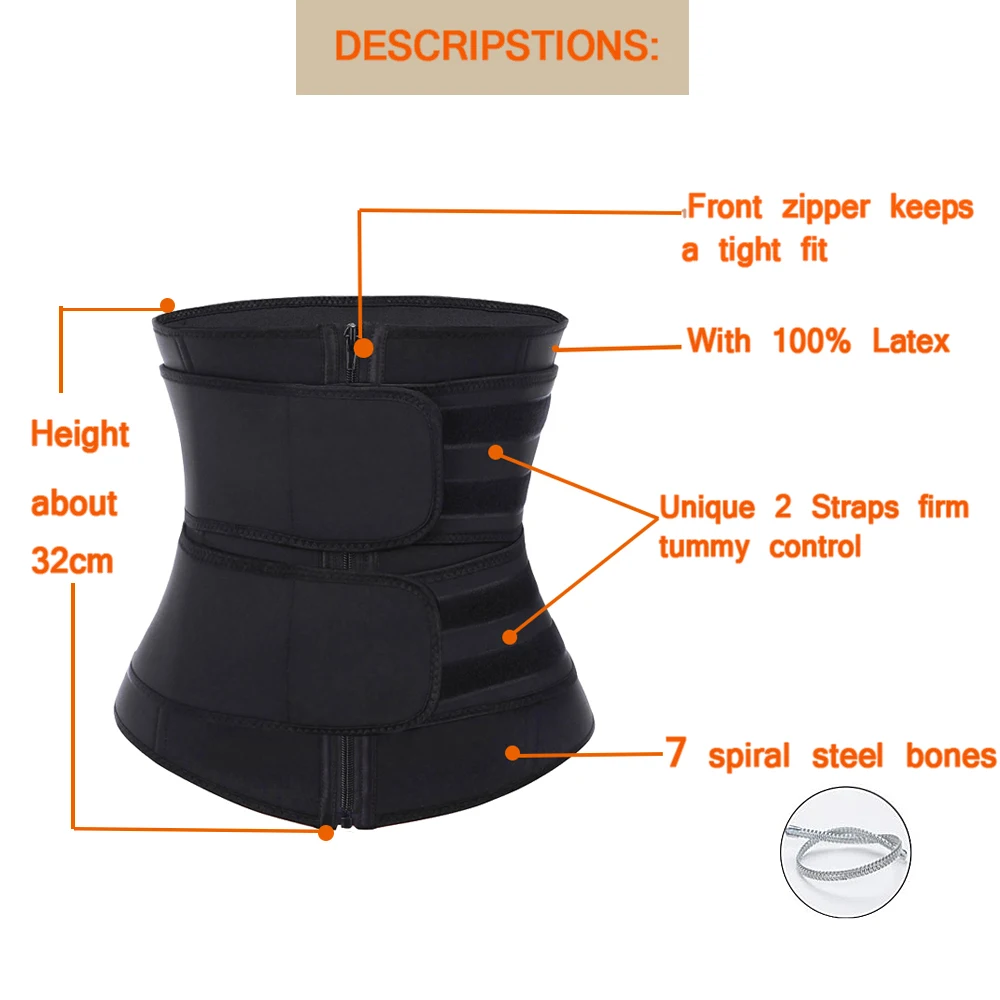 Product Name: HEXIN двойной пояс, 100% латексный тренажер для талии, Формирователи для тела, фитнес, тренажер для талии, Корректирующее белье на молнии, пояс дл...