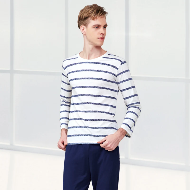 Special Offer Пара пижам, хлопковый полосатый пижамный комплект с круглым вырезом, домашняя одежда для влюбленных, большие размеры, L 3XL, высокое качество, ... Discount 65% Today!