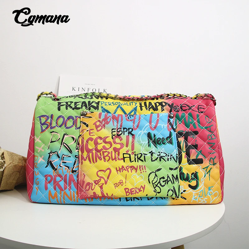Product Name: Женская сумка на плечо CGmana, большие сумки на плечо с принтом граффити, большие сумки для путешествий, 2019