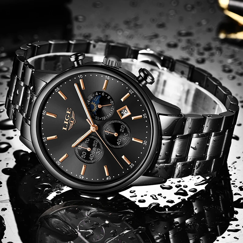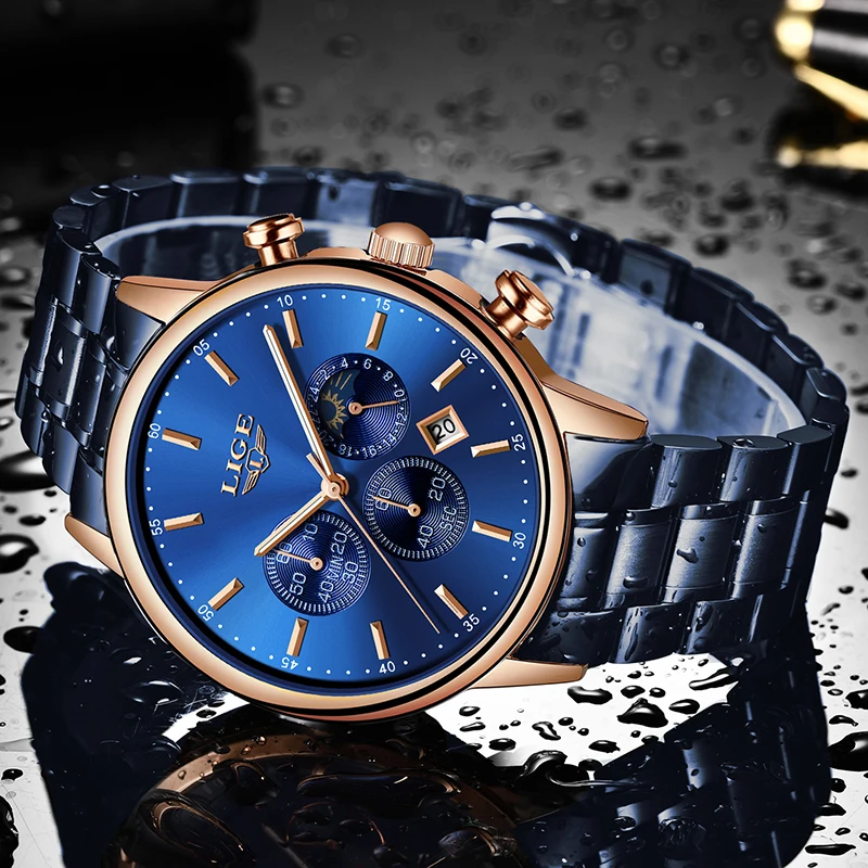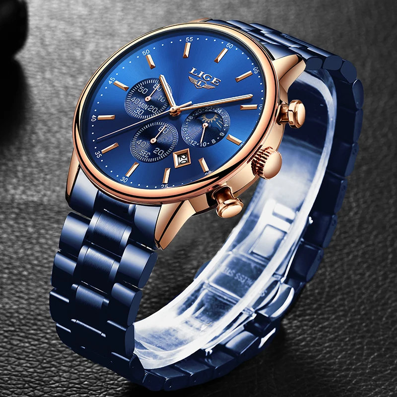 Product Name: LIGE модные синие мужские s часы лучший бренд класса люкс все стальные сетчатые кварцевые часы с ремешком мужские водонепроницаемые спортивн...