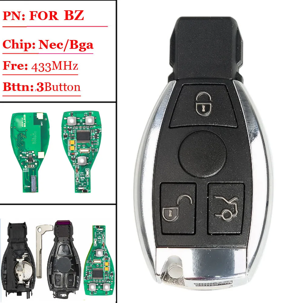 Product Name: (1 шт. лот) Пульт дистанционного управления Smart Key 433 МГц 3 кнопки для M ercedes BENZ replacment 2000 + Поддержка NEC и BGA Keyless Remote