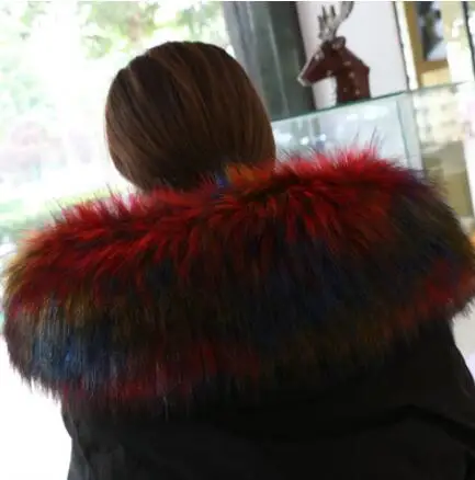 (10% Off) Купить Осенне зимняя женская супер большая шапка из искусственного меха лисы с большим воротником енота капюшоном шарф накидка 80 см Tb001 Цена Дешево