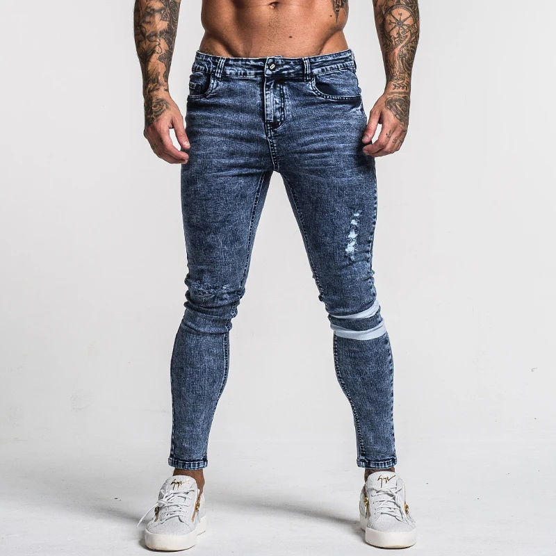 Product Name: Gingtto мужские обтягивающие джинсы, зауженные рваные джинсы, большие и высокие Стрейчевые синие джинсы для мужчин, потертые джинсы с эластичн...