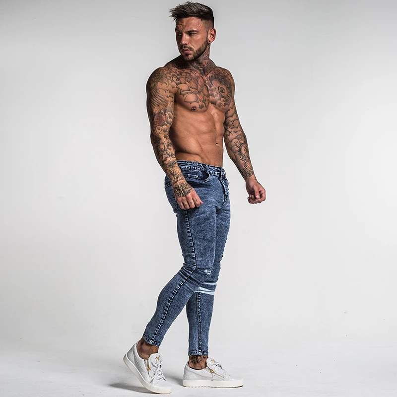 (24% Off) Купить Gingtto мужские обтягивающие джинсы, зауженные рваные большие и высокие Стрейчевые синие джинсы для мужчин, потертые с эластичн... Цена Дешево